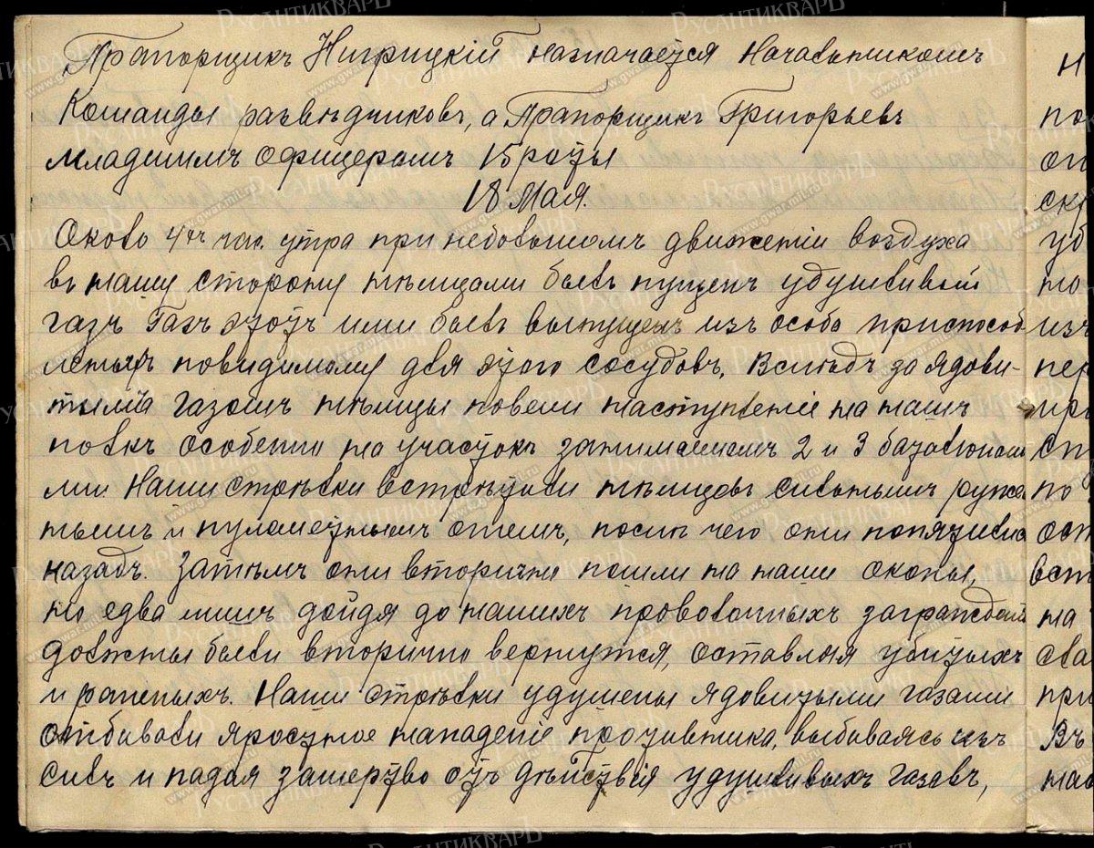 Журнал военных действий 55 Сибирского стрелкового полка за 18 мая 1915 года: