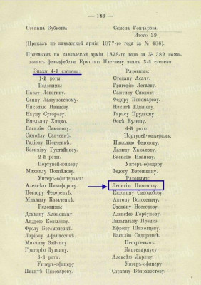 Леонтий Пимонов «За отличие, оказанное в разновременных делах и перестрелках с Турками» во время Русско-турецкой войны 1877–1878 гг. (РГИА. Ф. 496. Оп. 3. Д. 822. Л. 201об.–202).