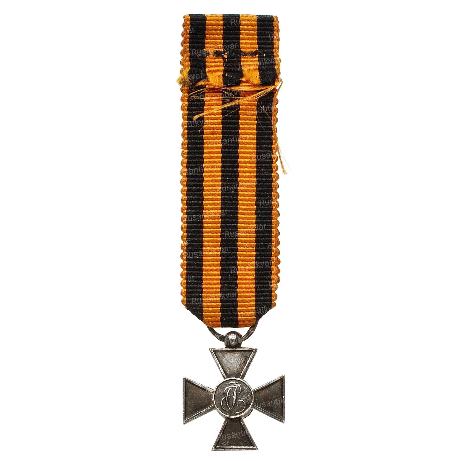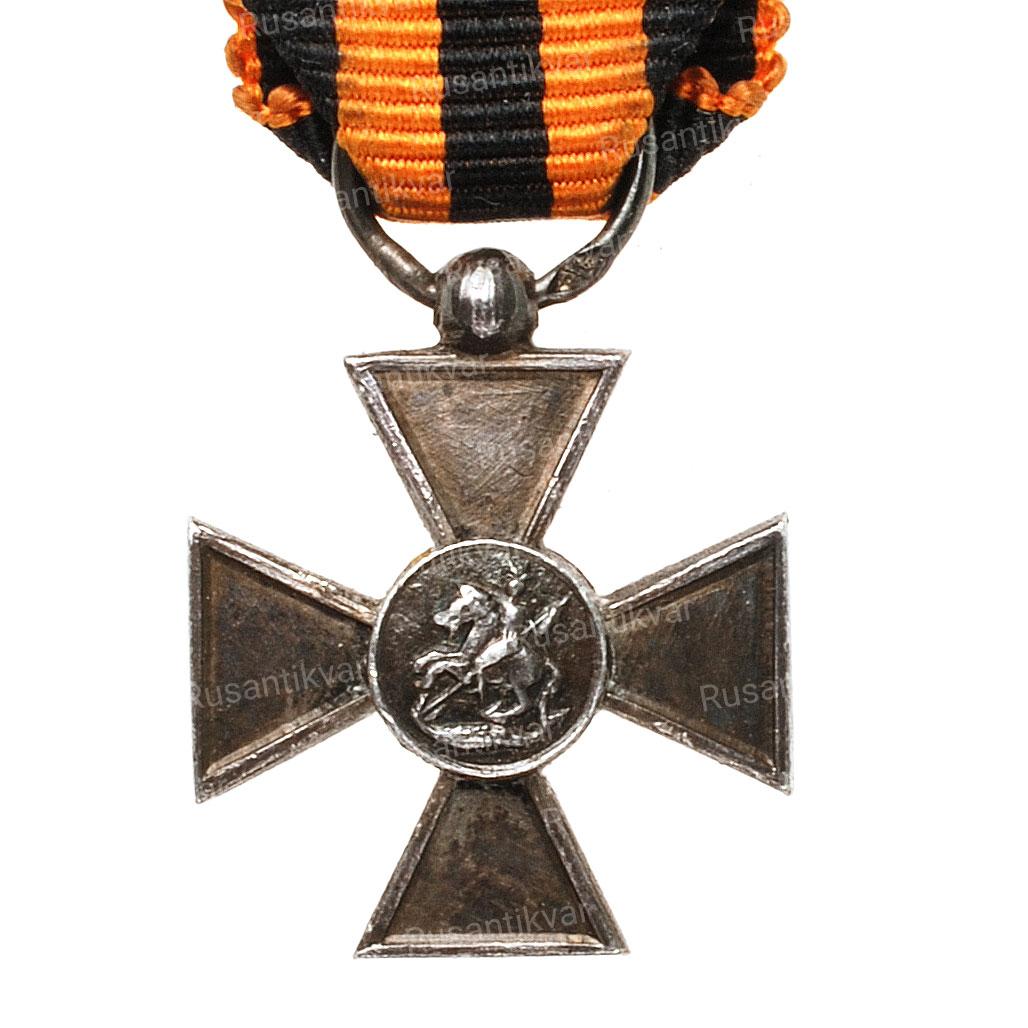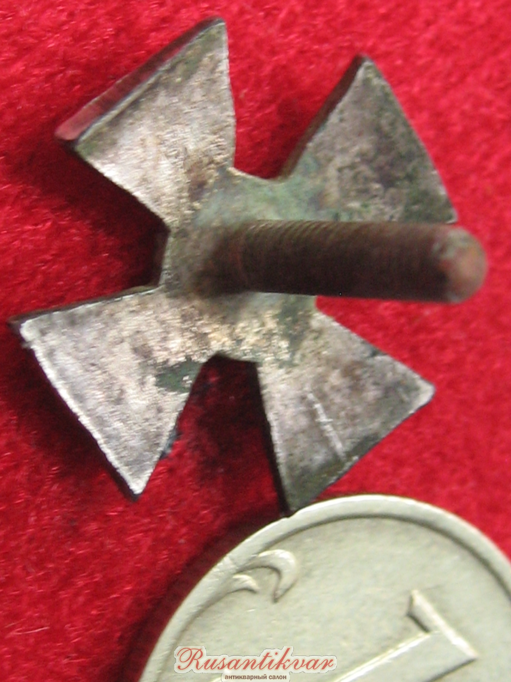 Красивый крест,но к оружию думаю он отношения не имеет, к оружию крепились варианты "офицерского" знака ордена 4-й ст(позолоченного креста с белой эмалью), крест показанный Дерябин А.А посеребрянный и не имеет следов эмали,что говорит о его "солдатском" происхождении и по сему на оружии он находится не мог, да и винт(длина) на мой взгляд "заточен" под одежду.