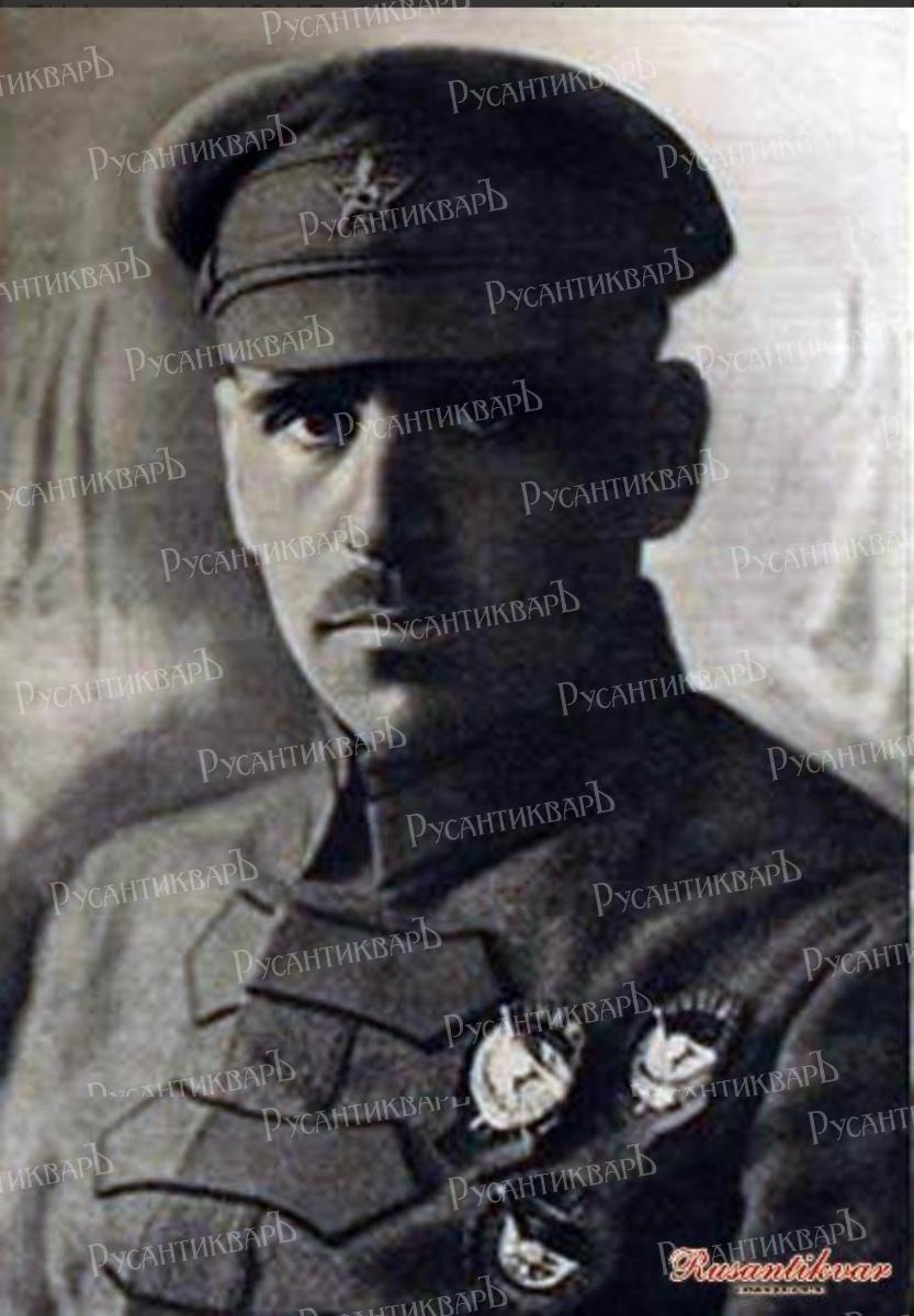 "24 апреля 1915 года,у д.Смаржова,командовал звеном и держался на занимаемой позиции даже в то время,как пехотная цепь влево начала отходить от него,чем предотвратил потерю удобной позиции.Ст.145 п.3 Георгиевского Статута".