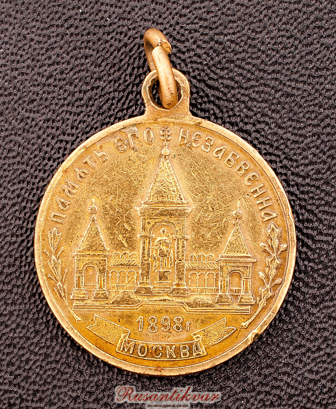 Реверс: В центре изображение мемориала Александра II. Вдоль борта по окружности надпись: "ПАМЯТЬ ЕГО НЕЗАБВЕННА." Изображение с двух сторон заключено в венок из листьев (слева – лавровые, справа – дубовые), соединенные внизу лентой с надписью: "МОСКВА." Над лентой дата: «1898».