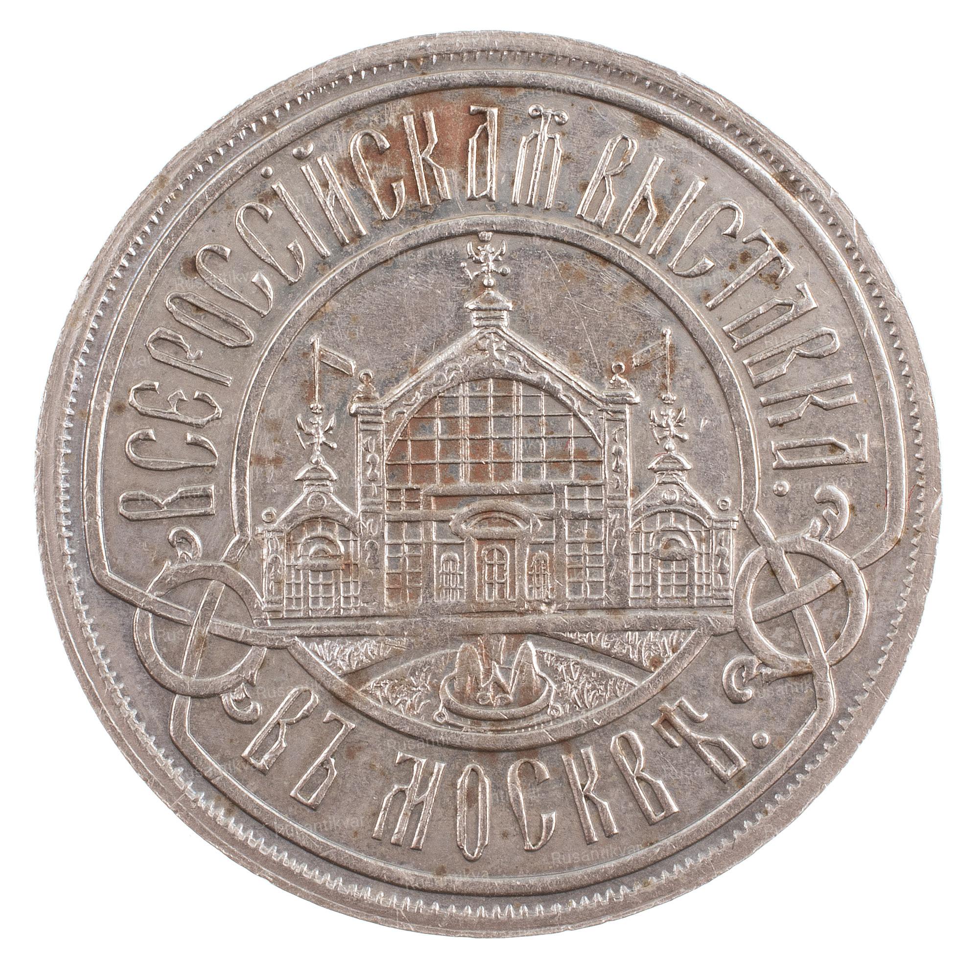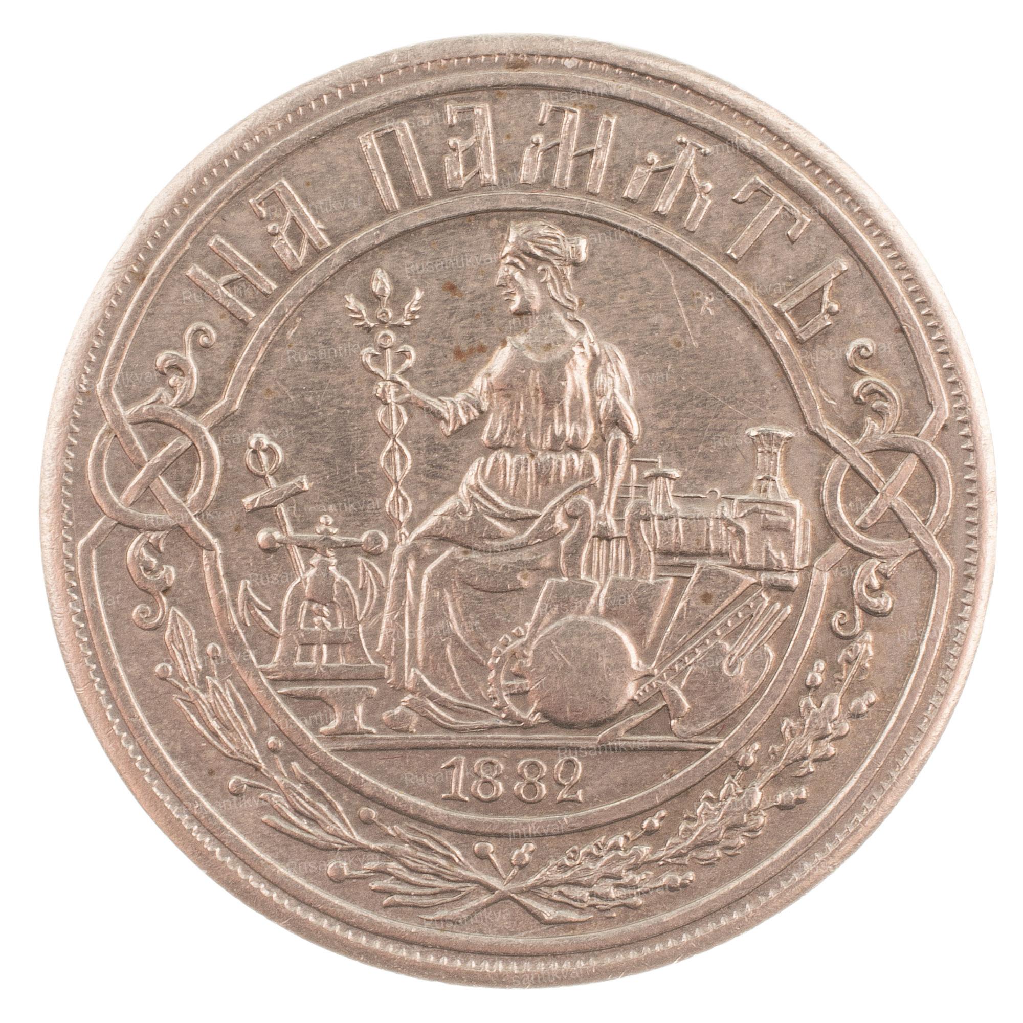 Жетон в память Всероссийской промышленно-художественной выставки 1882 г. в Москве. Москва. Мастерская К.А.Збука. Белый металл; 7,75 г. Диаметр 28,5 мм.