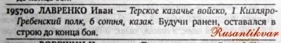 казак Иван Платонович ЛАВРЕНКО, ст Новогладовская, женат