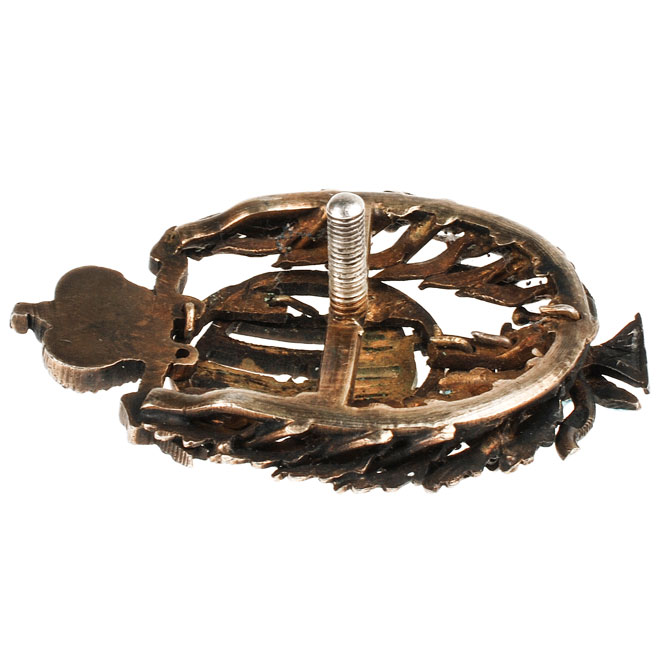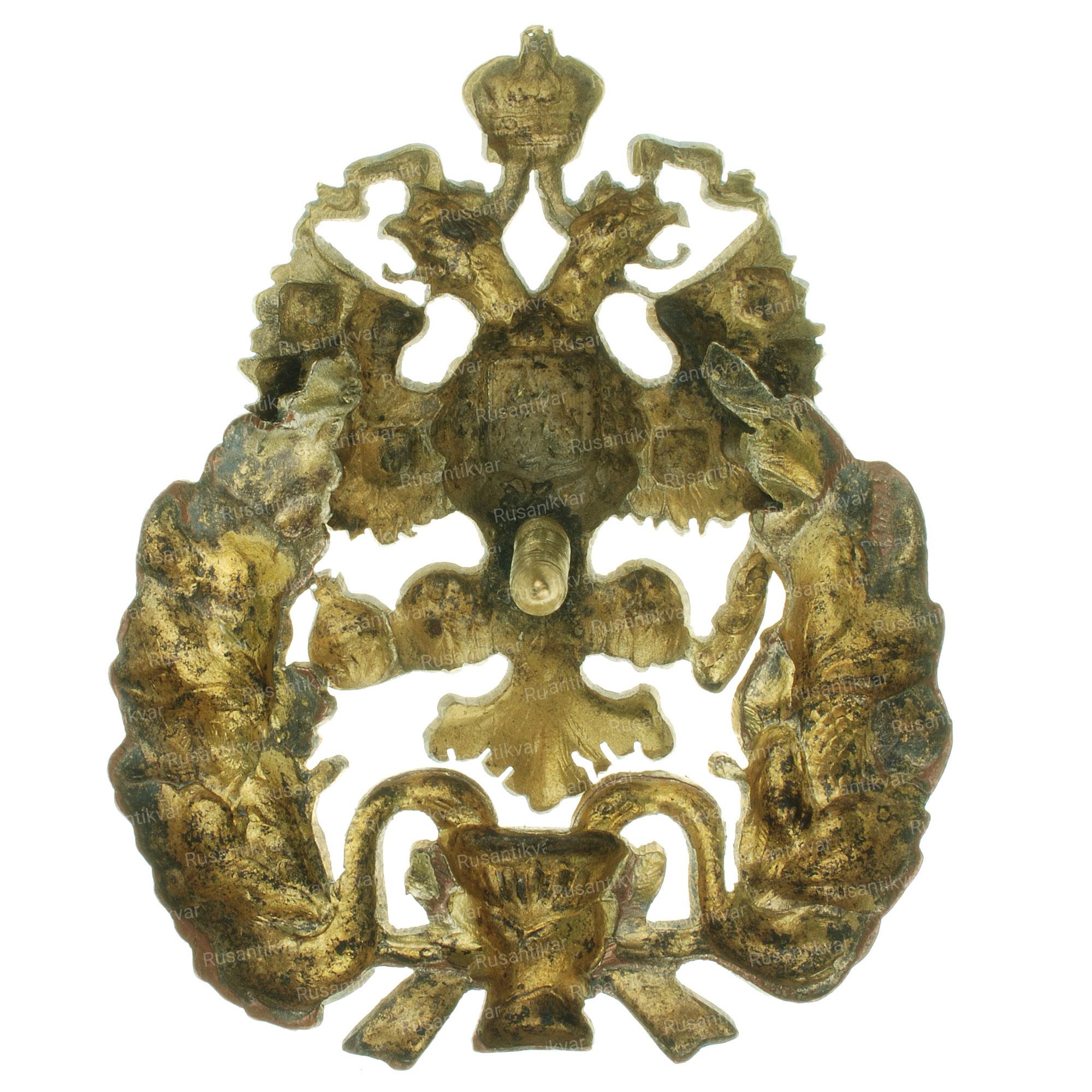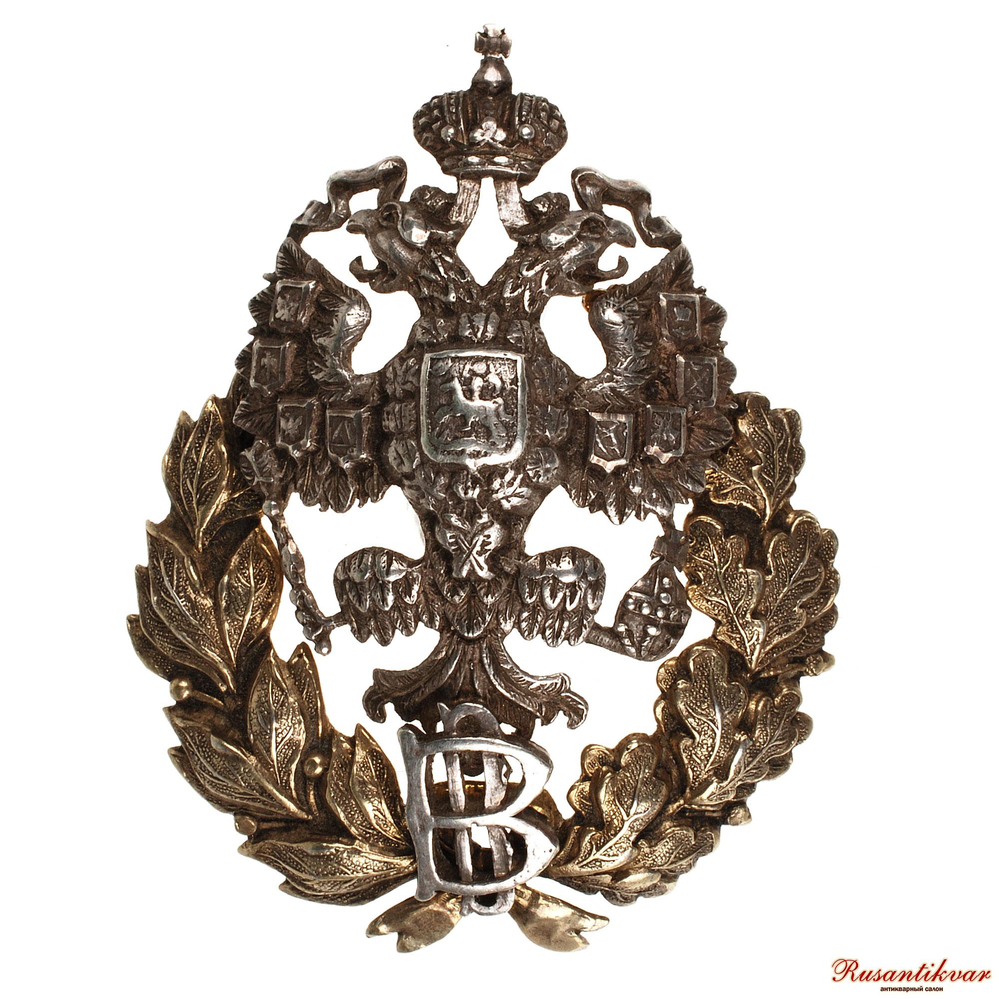 Бронза 15,2 гр, позолота, эмаль Знак овальной формы 49,6х31 мм., состоящий из золотых вензелей Императоров Павла I и Николая II под золотой Императорской короной с ниспадающими золотыми лентами.
