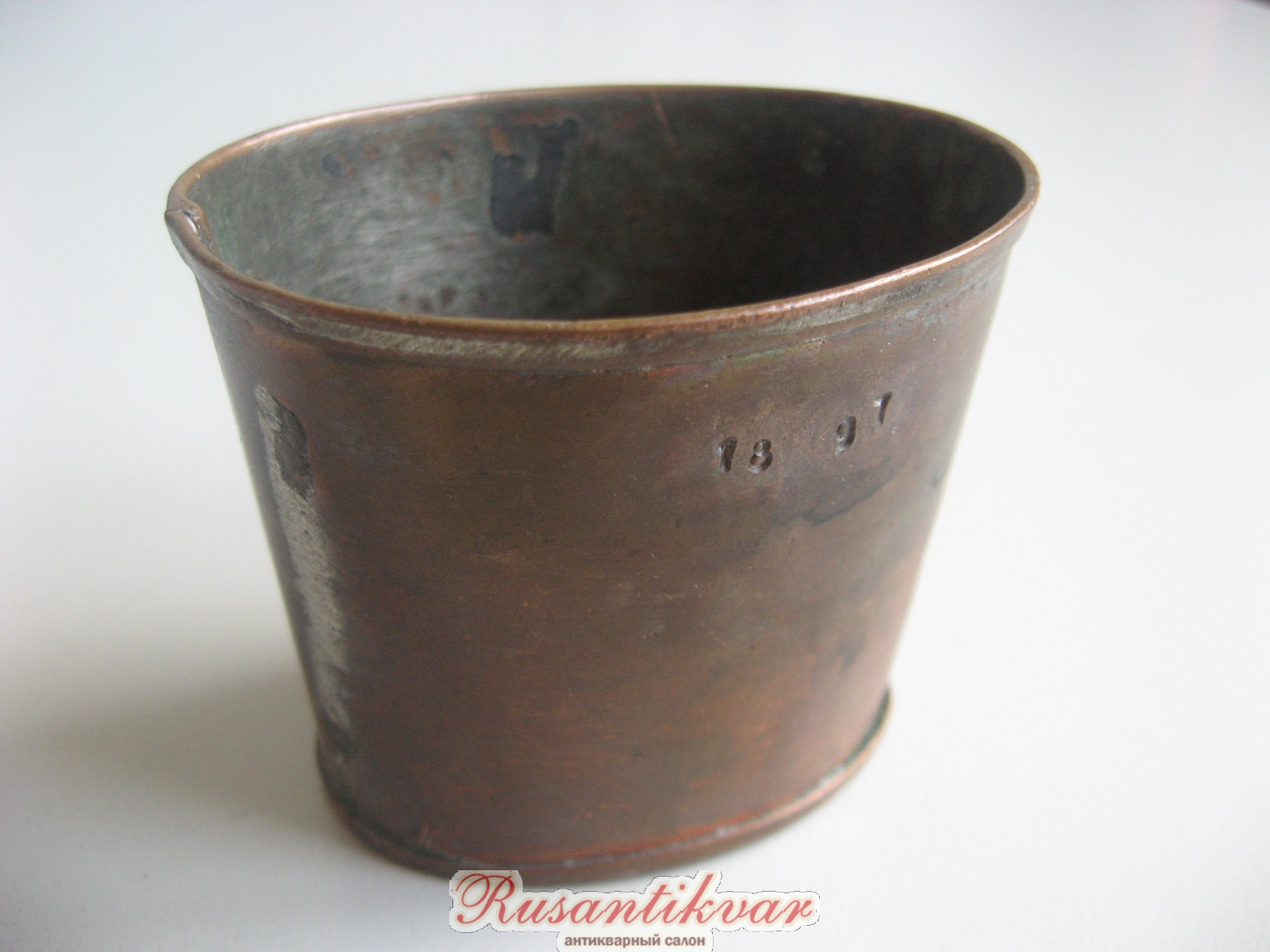 Чарка медная РИА образца 1882/1901 года для винной порции. Объем 123 гм. Отменена в 1909 году вместе с винной порцией