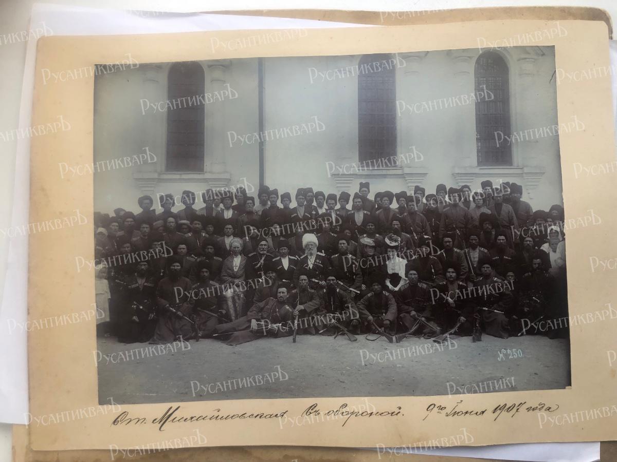 Колюбакин Алексей Михайлович с казаками станицы Михайловская 9 июня 1907 года.