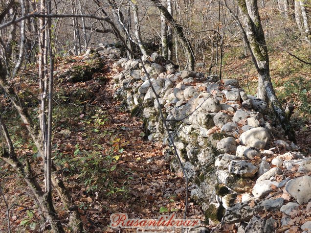 В лесу появились развалины стен разделяющих границы старых татарских усадьб (а может еще и не татарских... греческих, но последними здесь жили татары).
