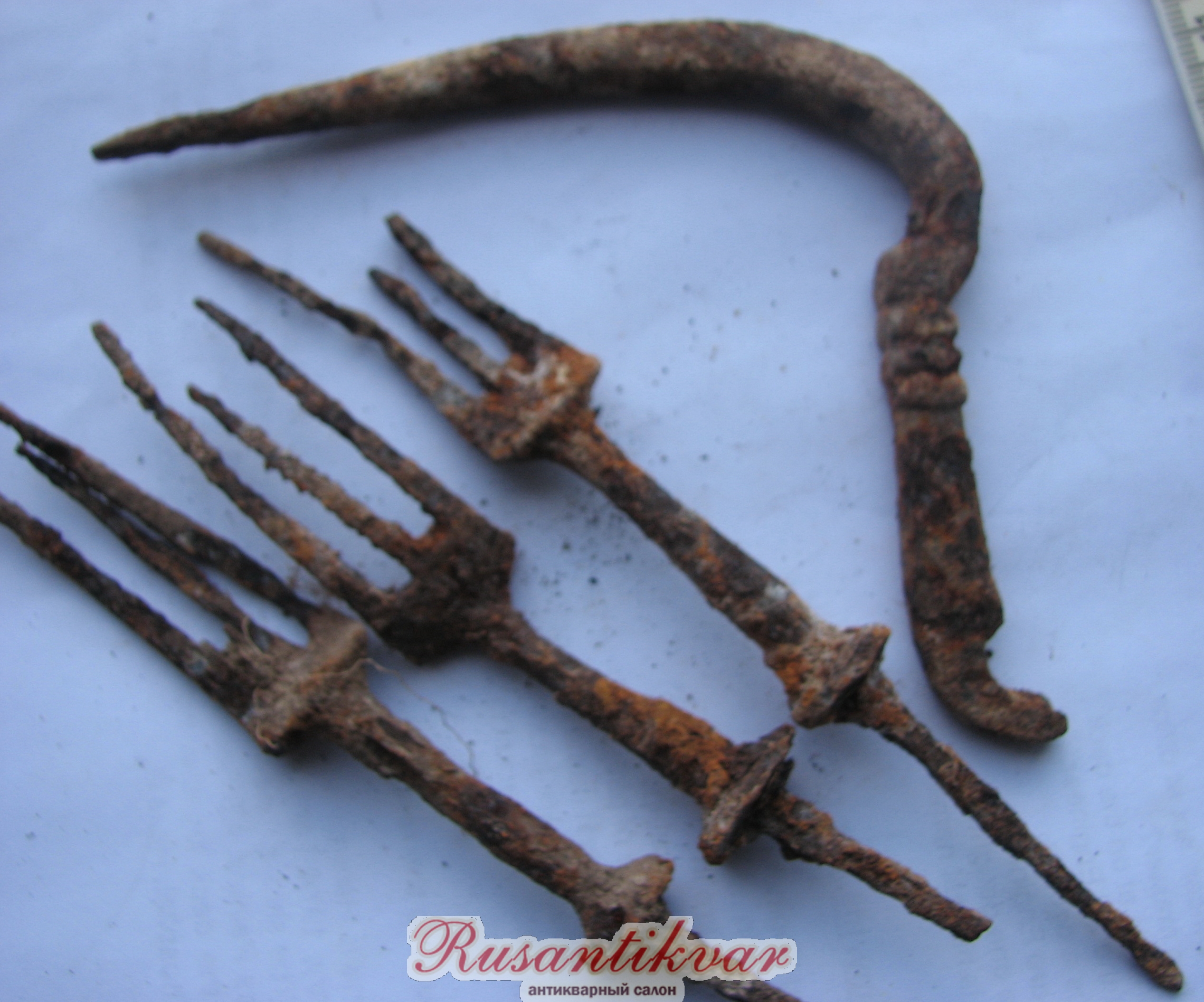 Продолжу по чуть-чуть: вилки с крючком,Часть подсвечника?,пузырек из синего стекла.