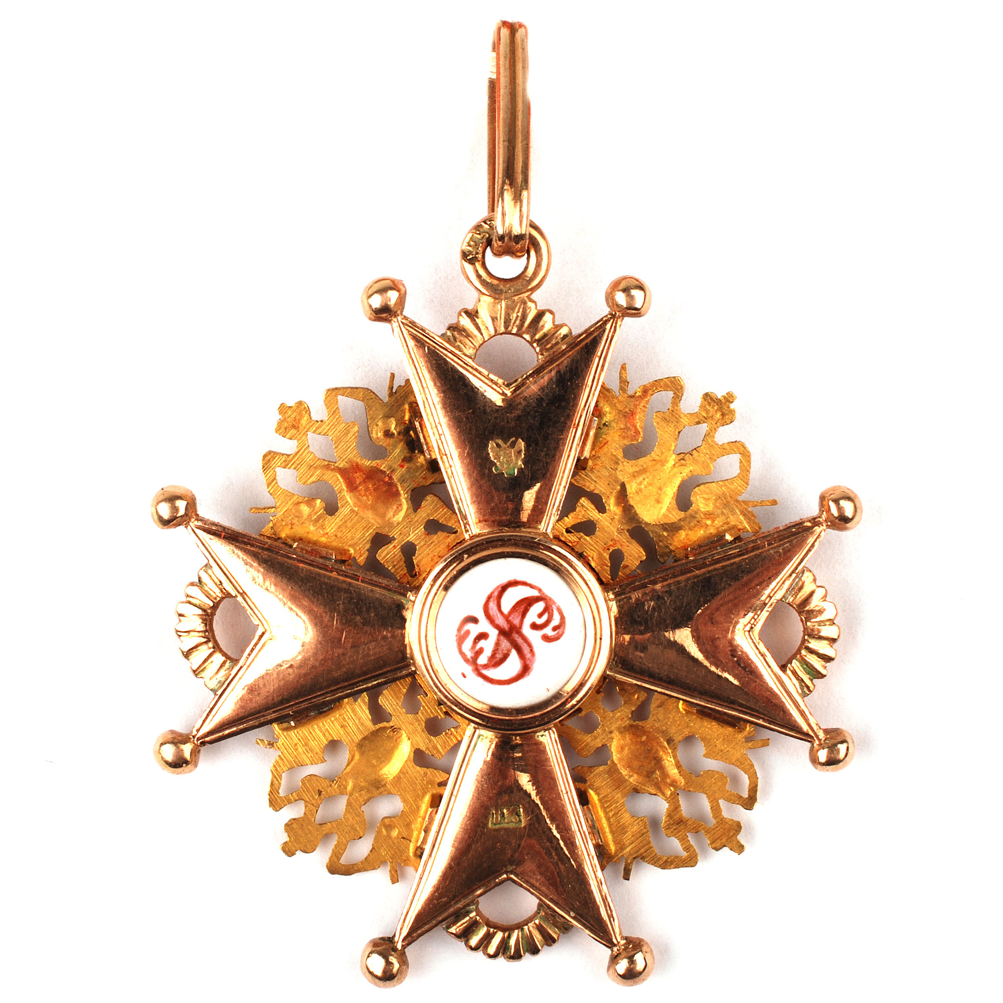 Орден 2-й степени — красный четырехконечный крест с золотой каймой и ажурной орнаментацией между концами — носился на шейной ленте («Анна на шее»).