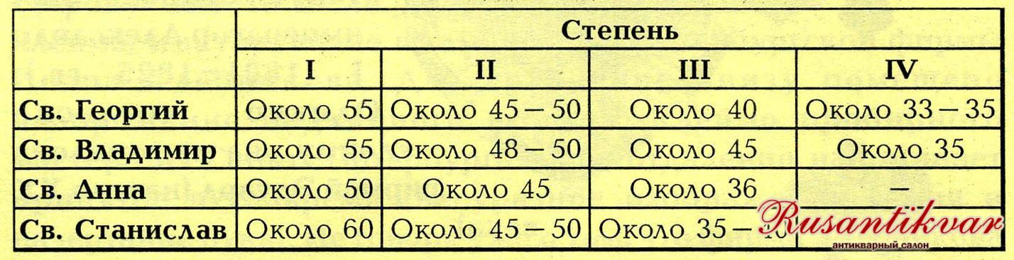 Полезная информация:таблица размеров Орденов в зависимости от степени...