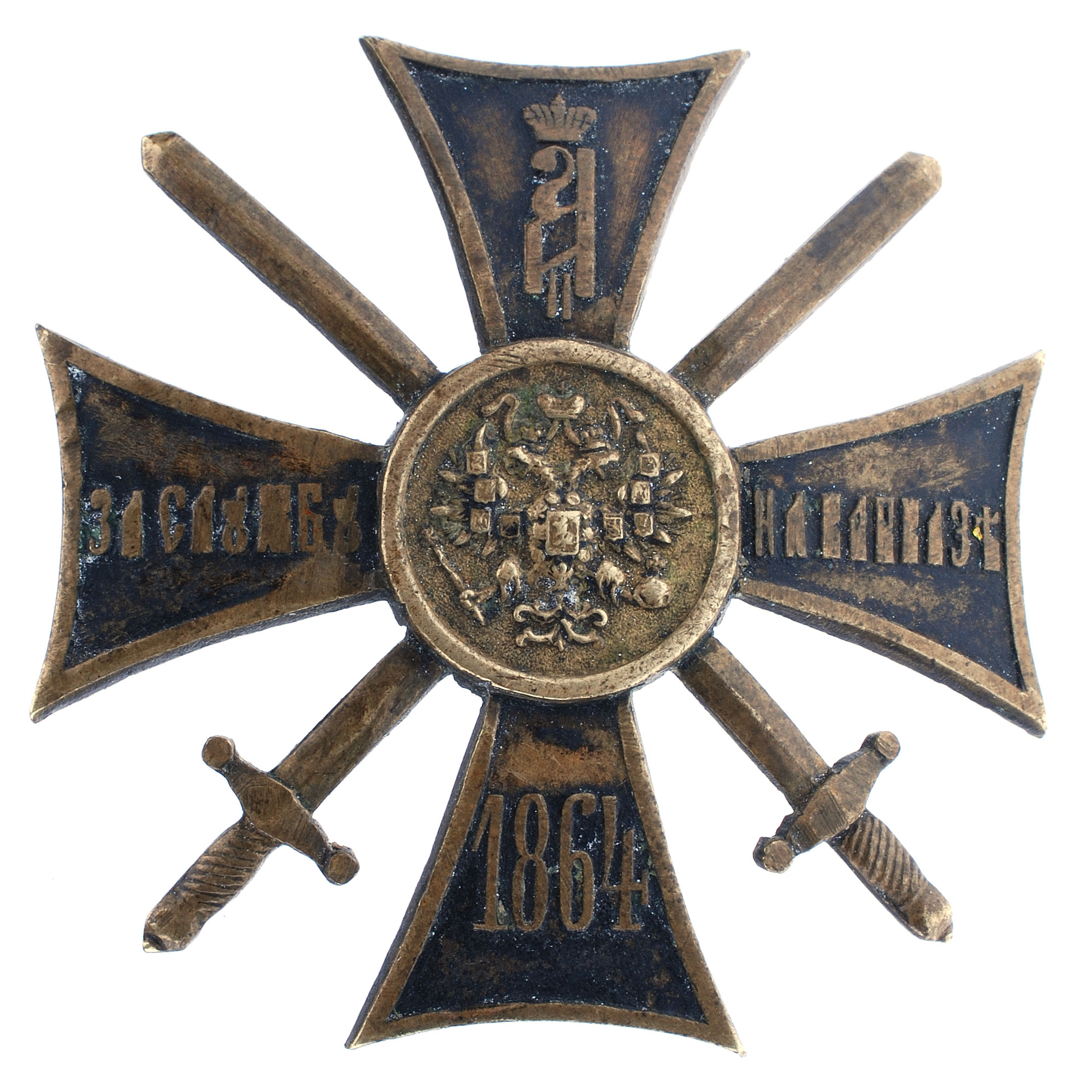 Награждались этим знаком штаб- и обер-офицеры, принимавшие участие в военных действиях против горцев в 1859-1864 годах. Носили крест на левой стороне мундира ниже всех орденских знаков.