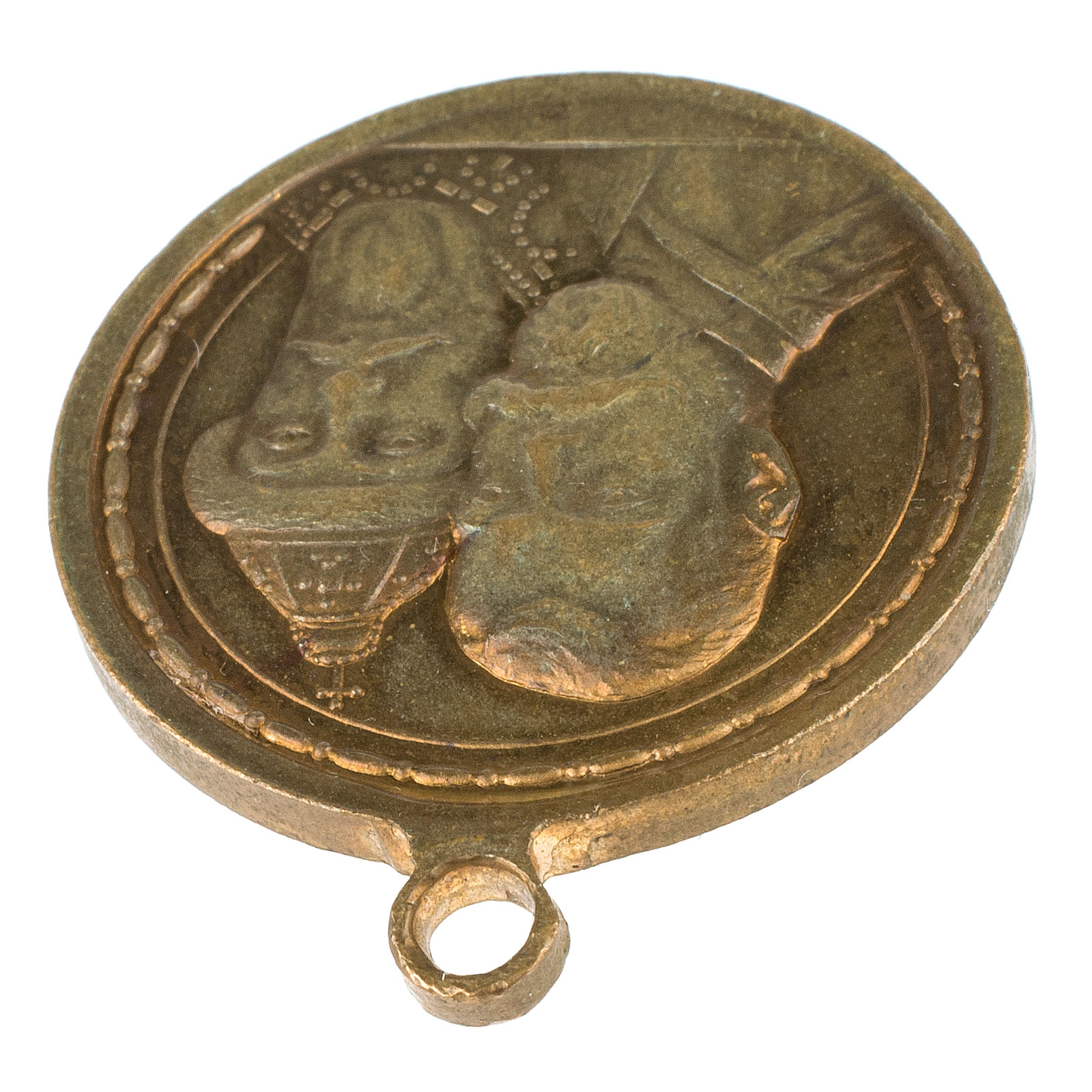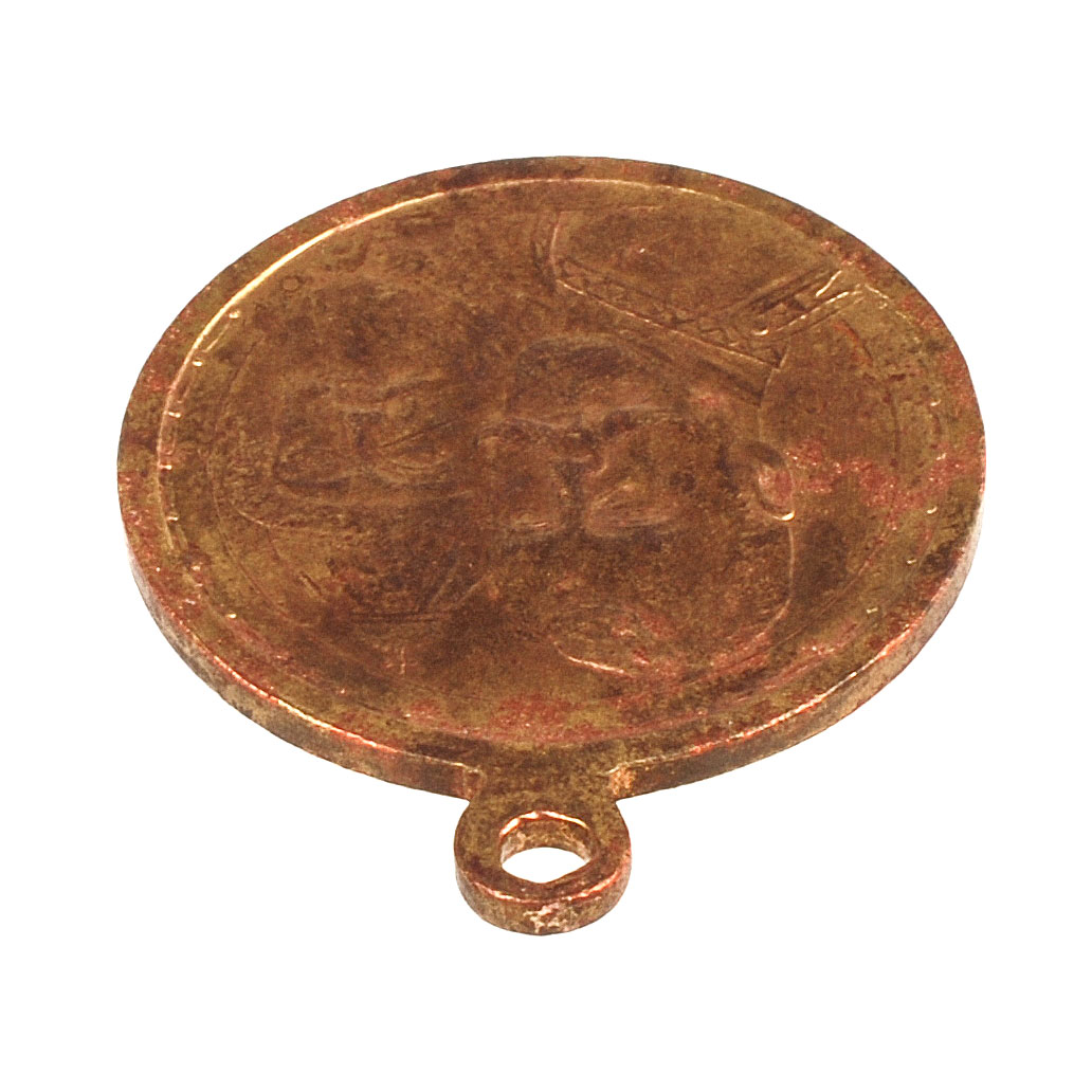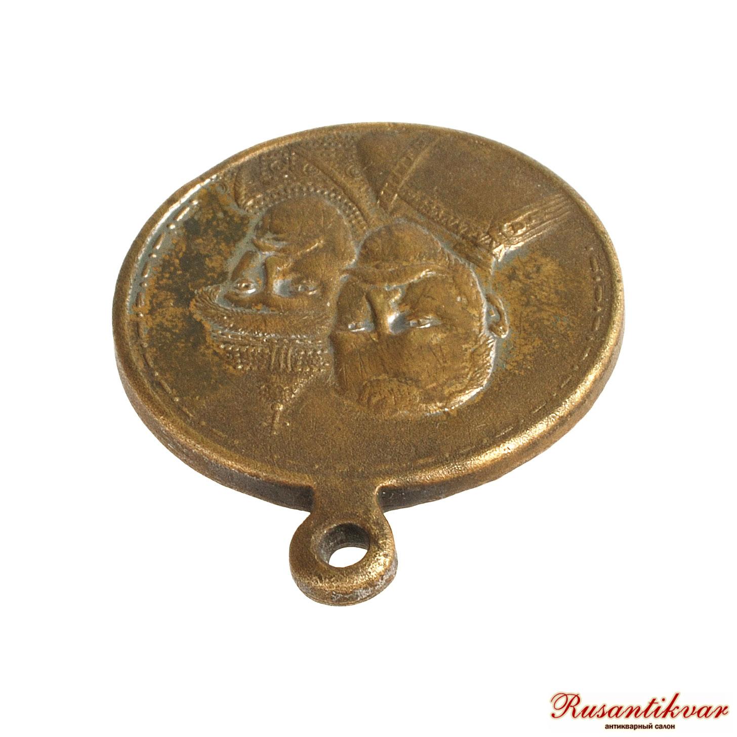 Вензель на погоне Императора Николая II прописная «а». Крест на шапке Михаила не касается сплошной линии. Пунктирная линия на аверсе начинается с пунктира им же и заканчивается. Медаль без позолоты, медная, что бывало нечасто.