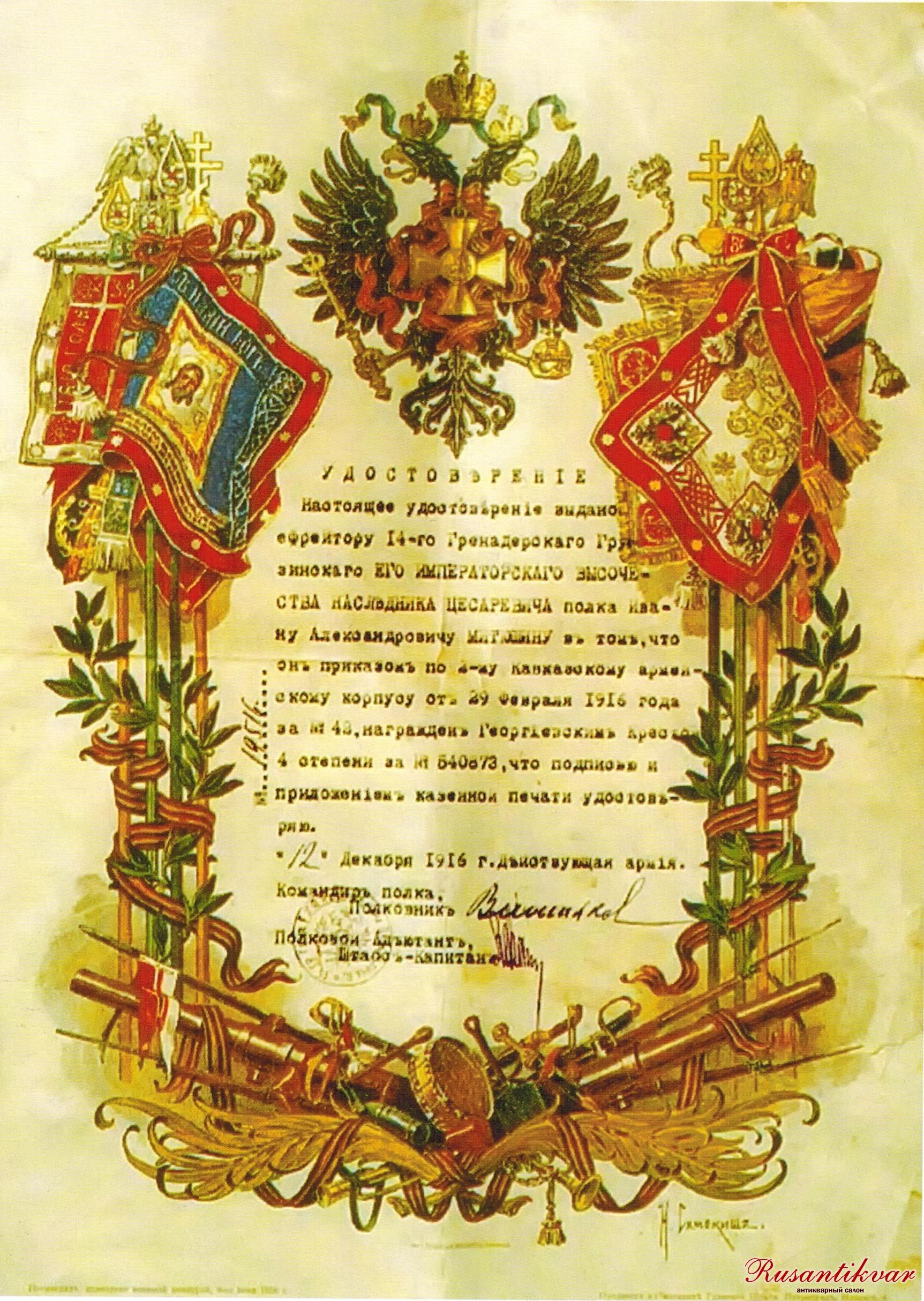 14. Удостоверение Георгиевского кавалера.