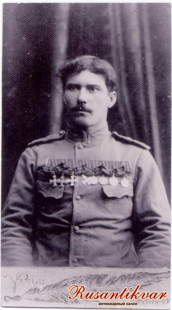 Награжден Георгиевскими крестами: 4-й ст. - № 53462; 3-й ст. - № 38917; 2-й ст. - № 8165; 1-й ст. - № 354; Георгиевской медалью 4-й ст. - № 63854, медалями «За усердие» (на Станиславской ленте) и «В память 300-летия Дома Романовых». Фото 18