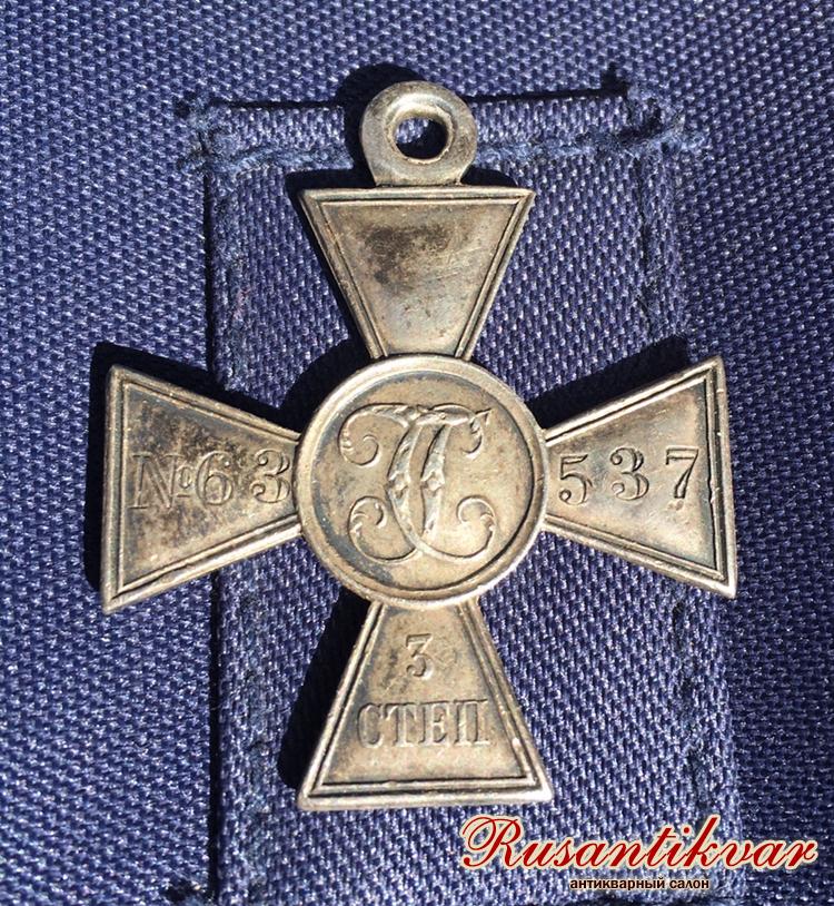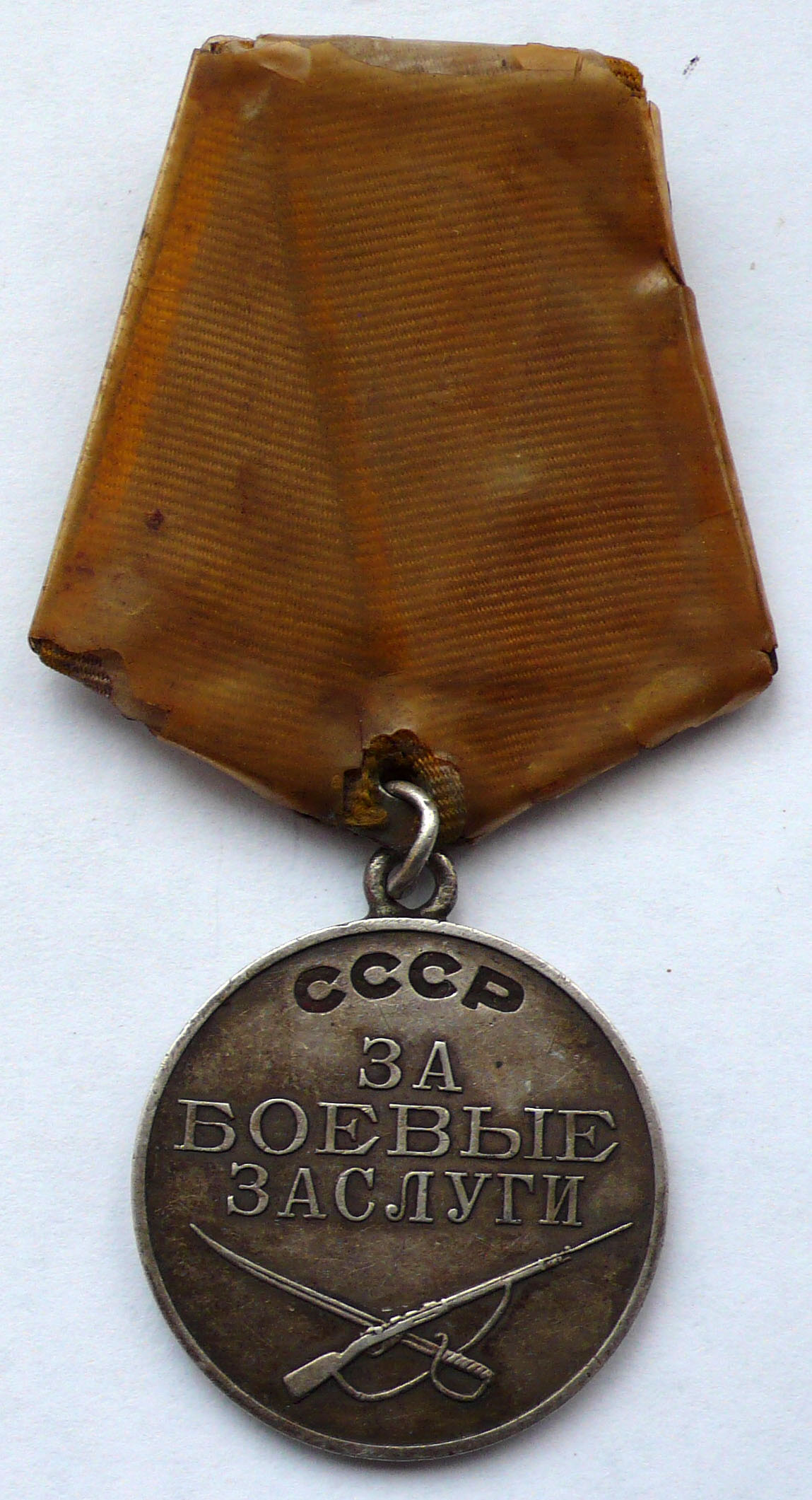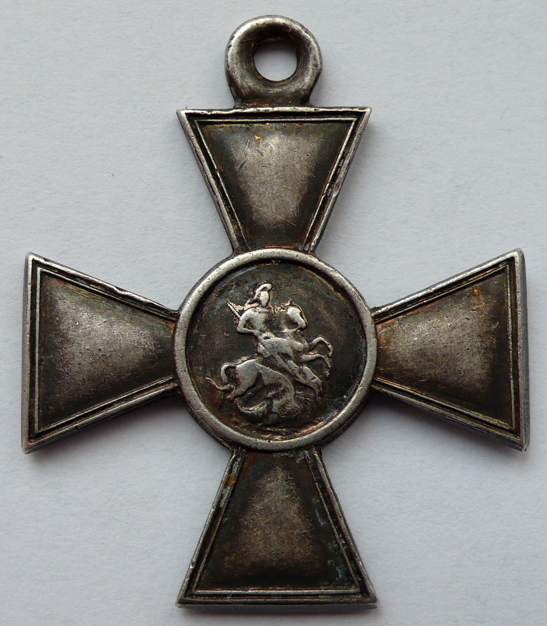 "За то,что в бою 23.01.1915 г. у с.Соколивка,будучи на наблюдательном посту,открыл наступление противника,о чем и донес своевременно,несмотря на сильный огоне его,продолжал наблюдать за ним,пока не получил приказ отойти".
