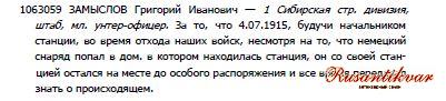 ГК 4 ст.1.063.059 ЗАМЫСЛОВ Григорий Иванович — 1 Сибирская стр. дивизия,