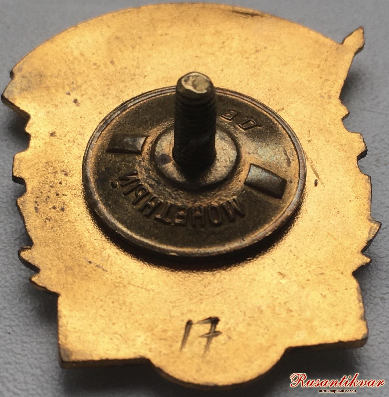 Знак в отличном состоянии, родном сборе, без всяких потерь качества, винт целый, резьба отличная, гайка родная. Малый номер. На документе. Мпц 13500.