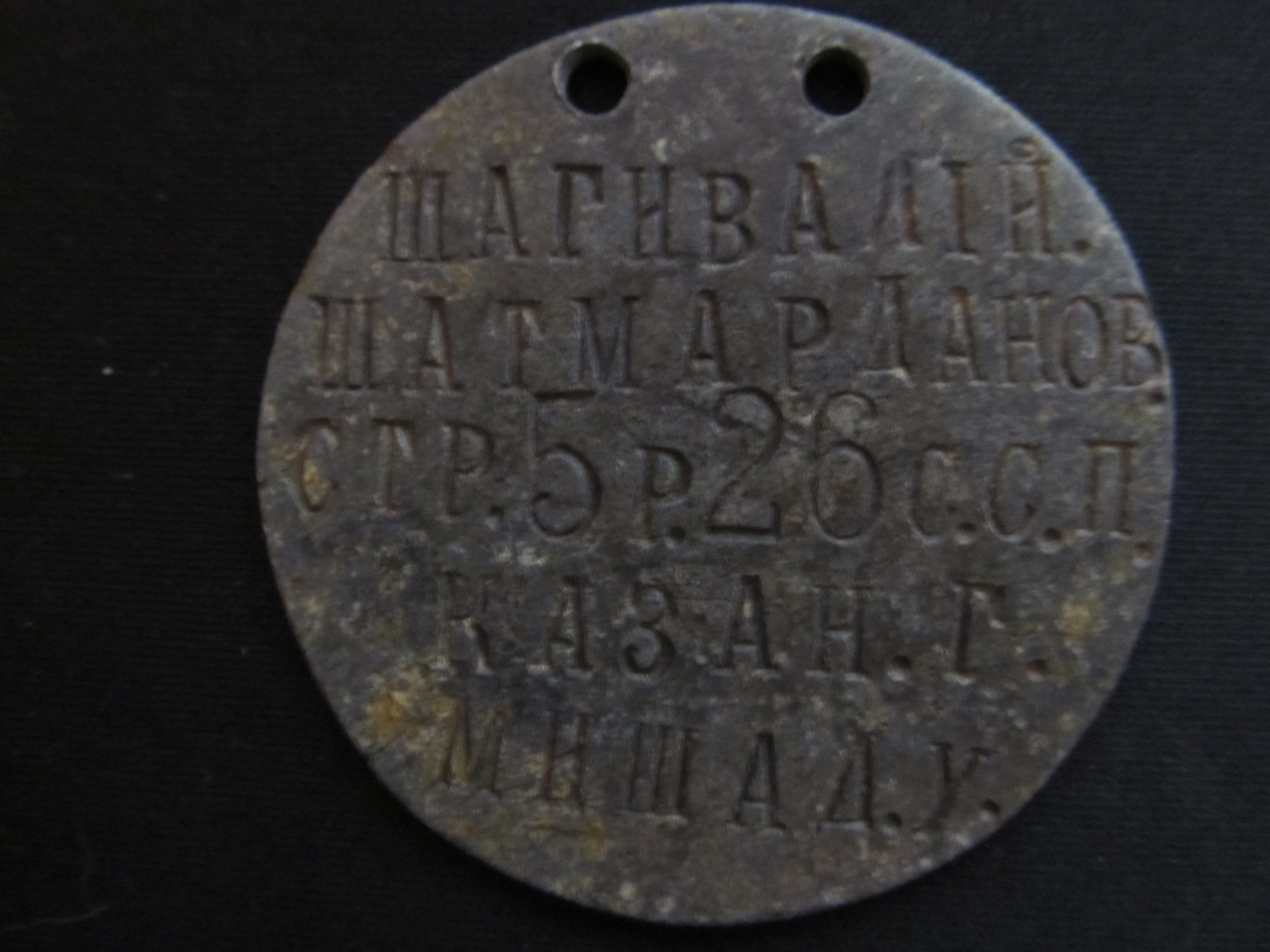Вот такие нашёл ЛОЗы у себя, пришли все в разное время из разных источников. №1- Шагивалий Шатмарданов, стрелок 5й роты 26го Сибирского стрелкового полка, уроженец Казанской губернии Мишадского уезда. №2- Ефим Авр.? Гудим, стрелок 16й роты 26го Сибирского стрелкового полка, уроженец Акмолинской области Омского уезда. №3- Игнат Парфёнович Комар, стрелок 5й роты 26го Сибирского стрелкового полка, уроженец Минской губернии Новогрудского уезда. Цинковый сплав.