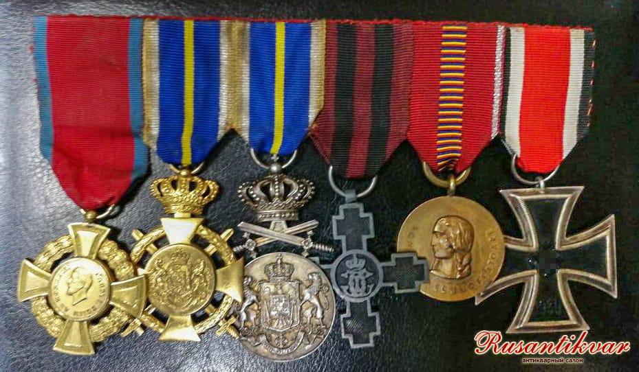 В 1939 году король Кароль II издал указ, по которому кресты "В Память перехода через Дунай" разрешалось носить старшим по мужской линии потомкам награжденных. На данной колодке как раз этот крест (немагнитный), плюс румынские награды и ЖК 3 Рейх....