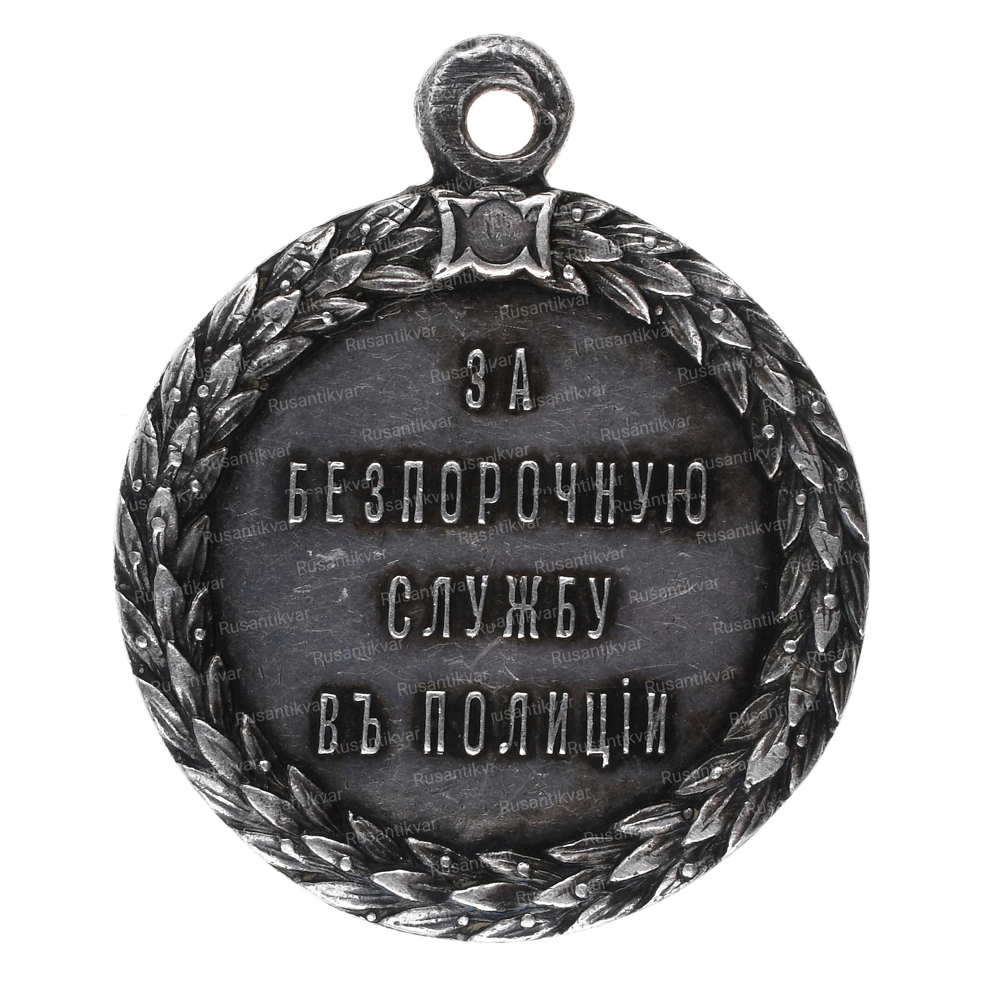 Медаль "За беспорочную службу в полиции" с портретом Императора Александра III. Ранний тип штемпеля, имя медальера « Л. ШТЕЙНМАНЪ Р.» на поле медали.