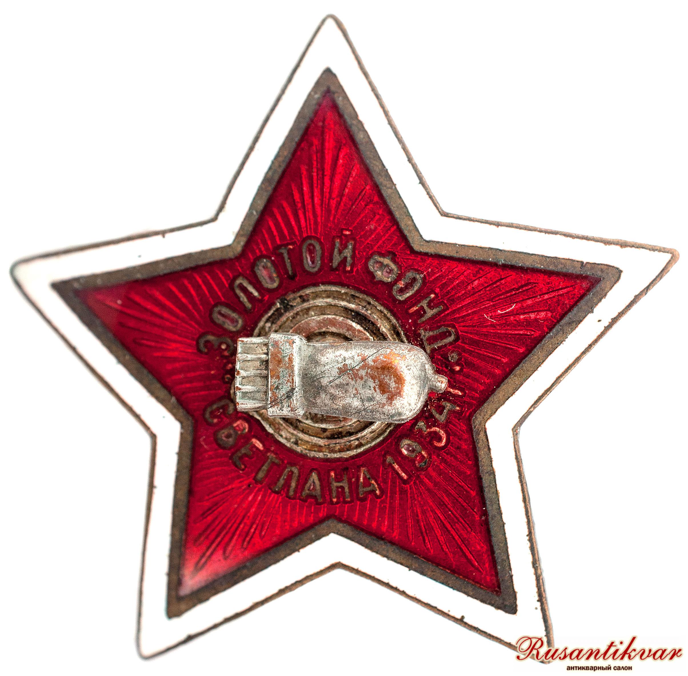 Знак "Золотой Фонд "Светлана" - был выпущен в 1934 году для награждения ударников Ленинградского завода "Светлана" проработавших не менее 20 лет. Награжденных около 100 человек. Размер 32х32 мм.
