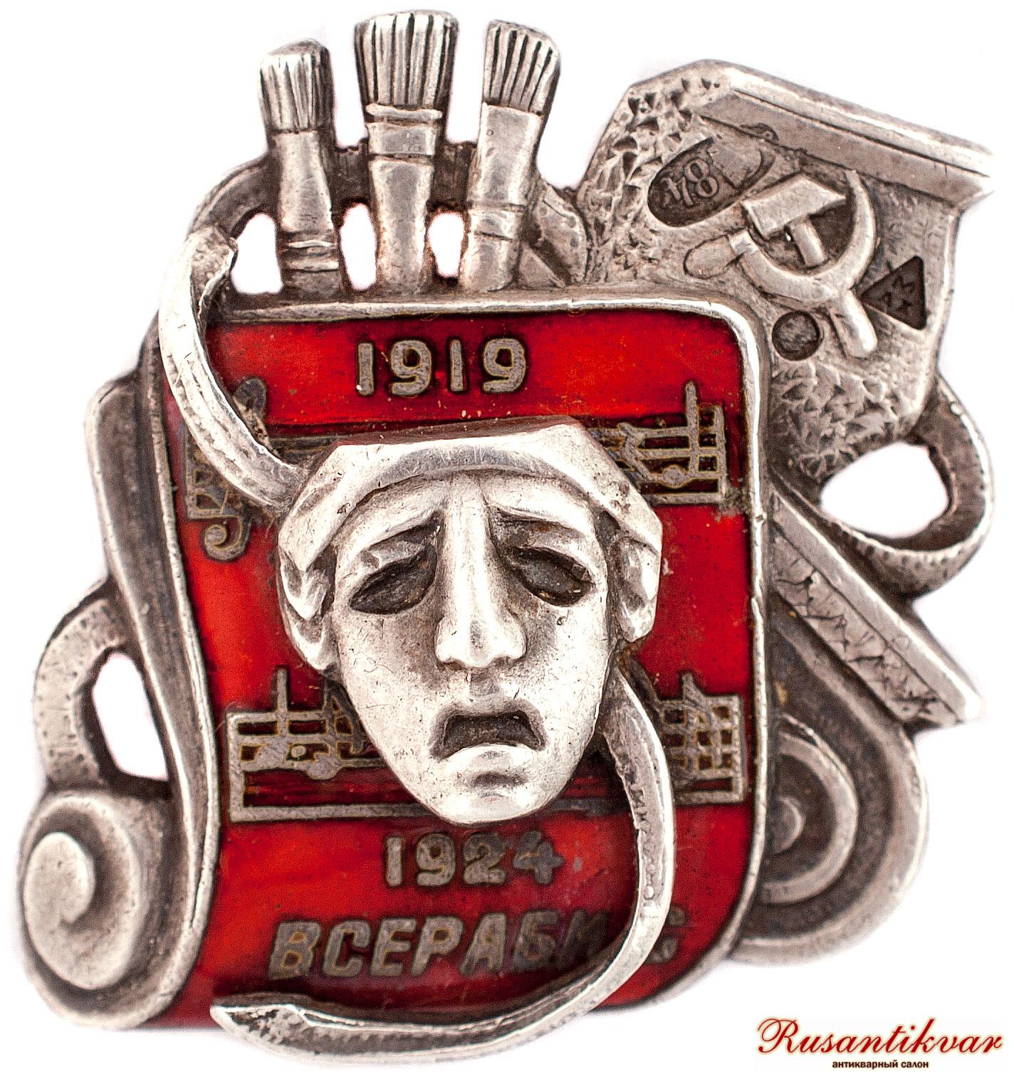 Знак "ВСЕРАБИС в честь 5-летия Союза работников искусств 1924 г. "