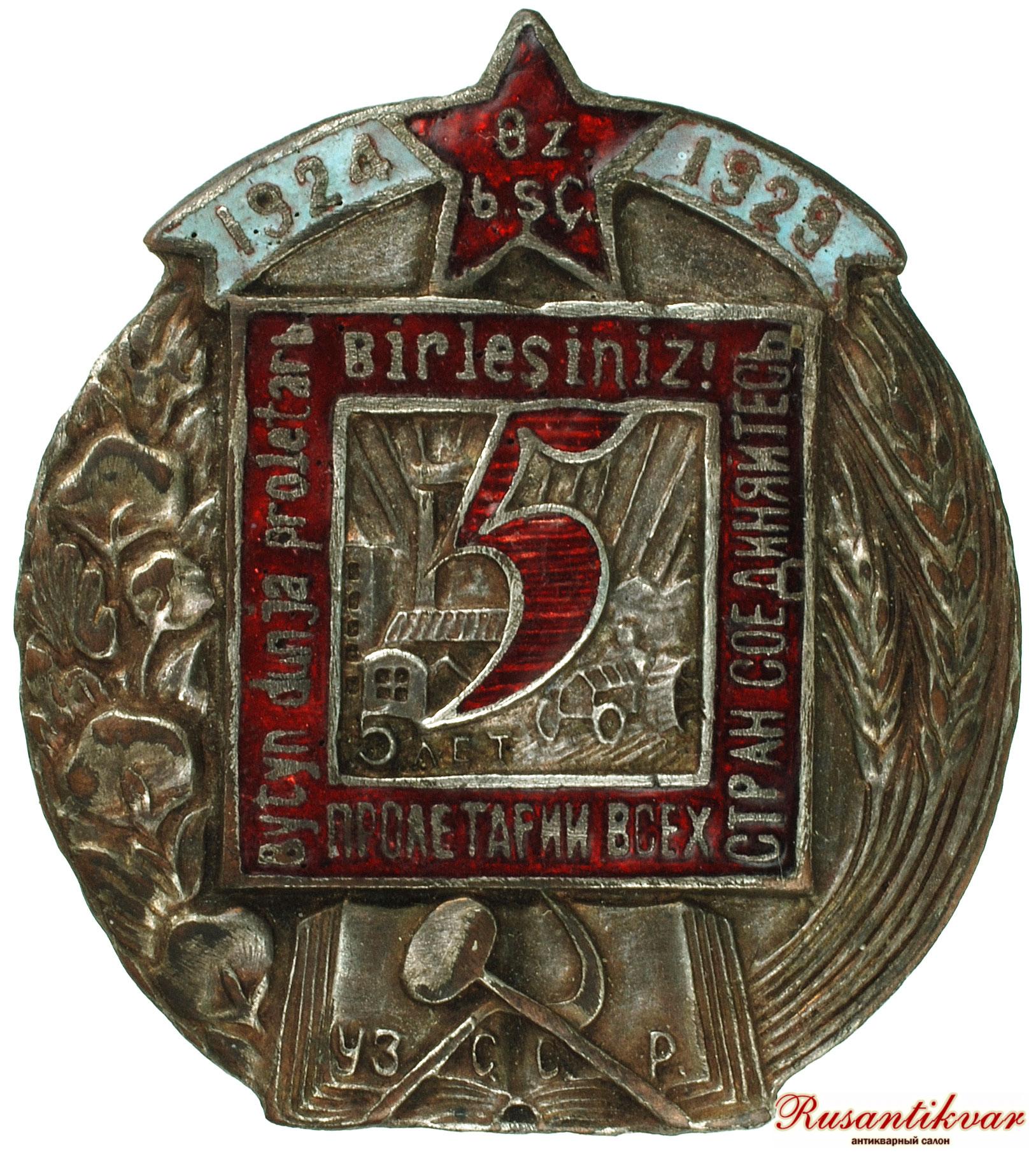 Знак "В память 5-летия образования Узбекской ССР. 1924-1927 гг. "