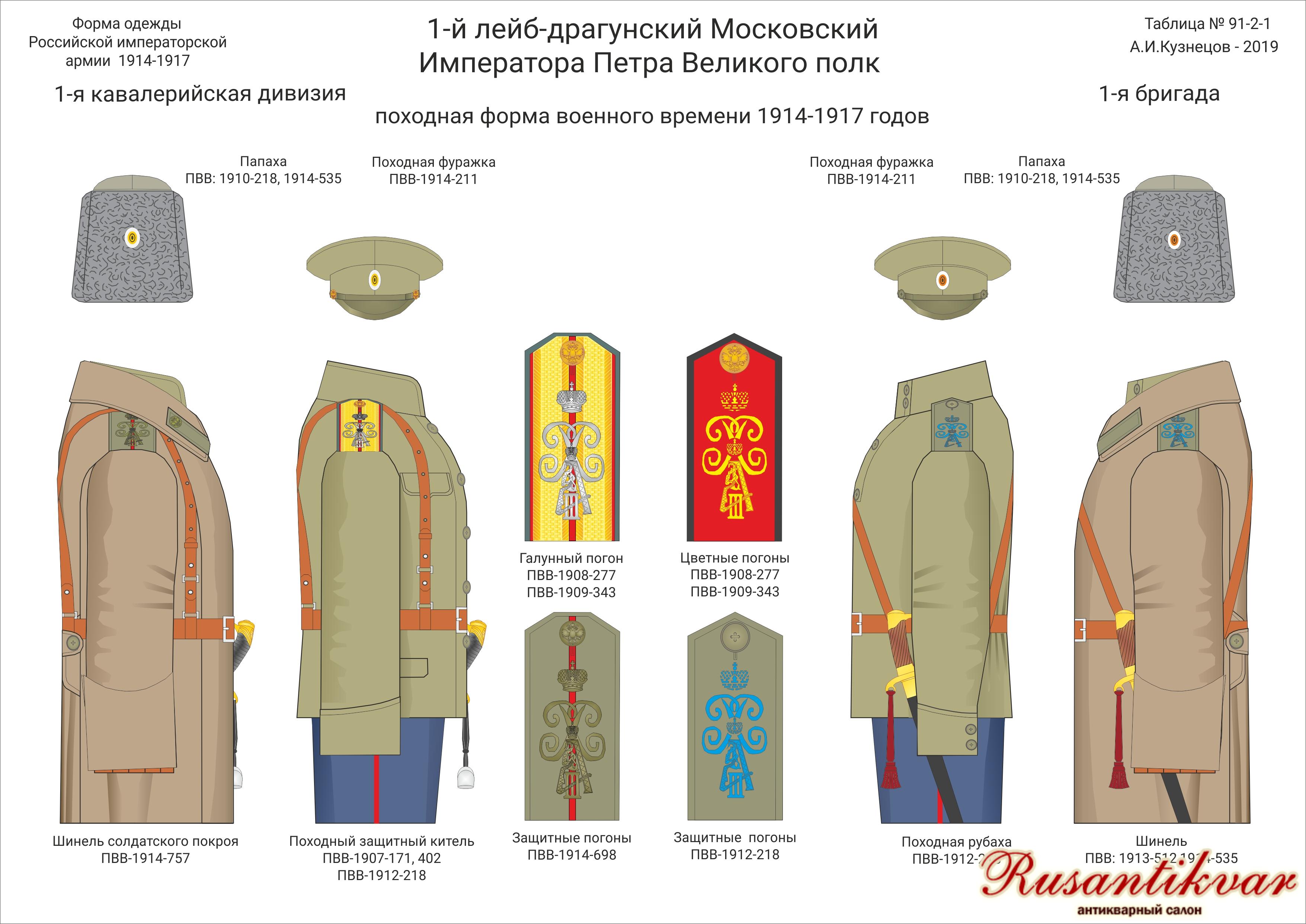 с 27 июня 1909 года — 1-й лейб-драгунский Московский Императора ПЕТРА ВЕЛИКОГО полк.