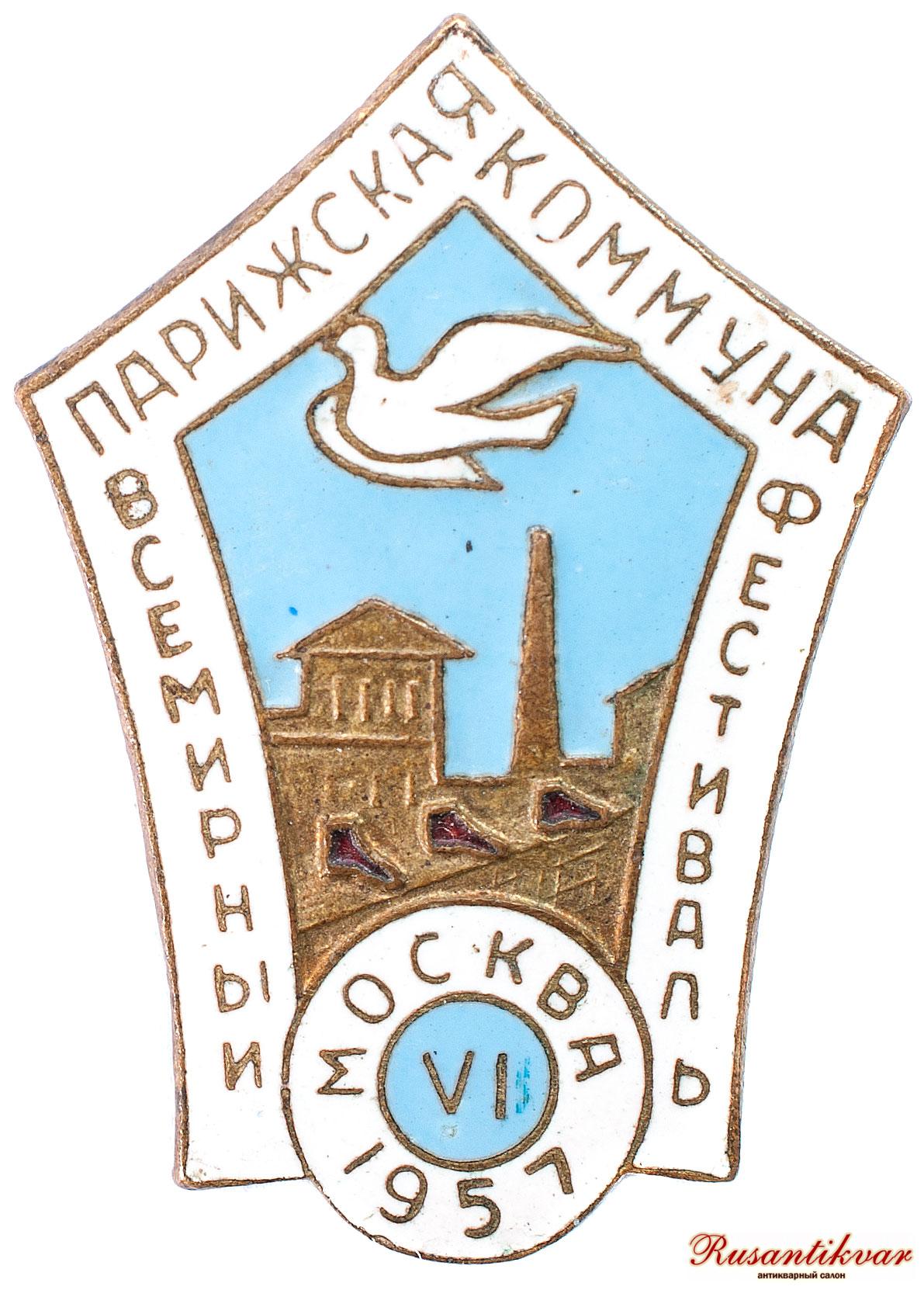 Знак "Парижская коммуна. Всемирный фестиваль. Москва.1957 г."
