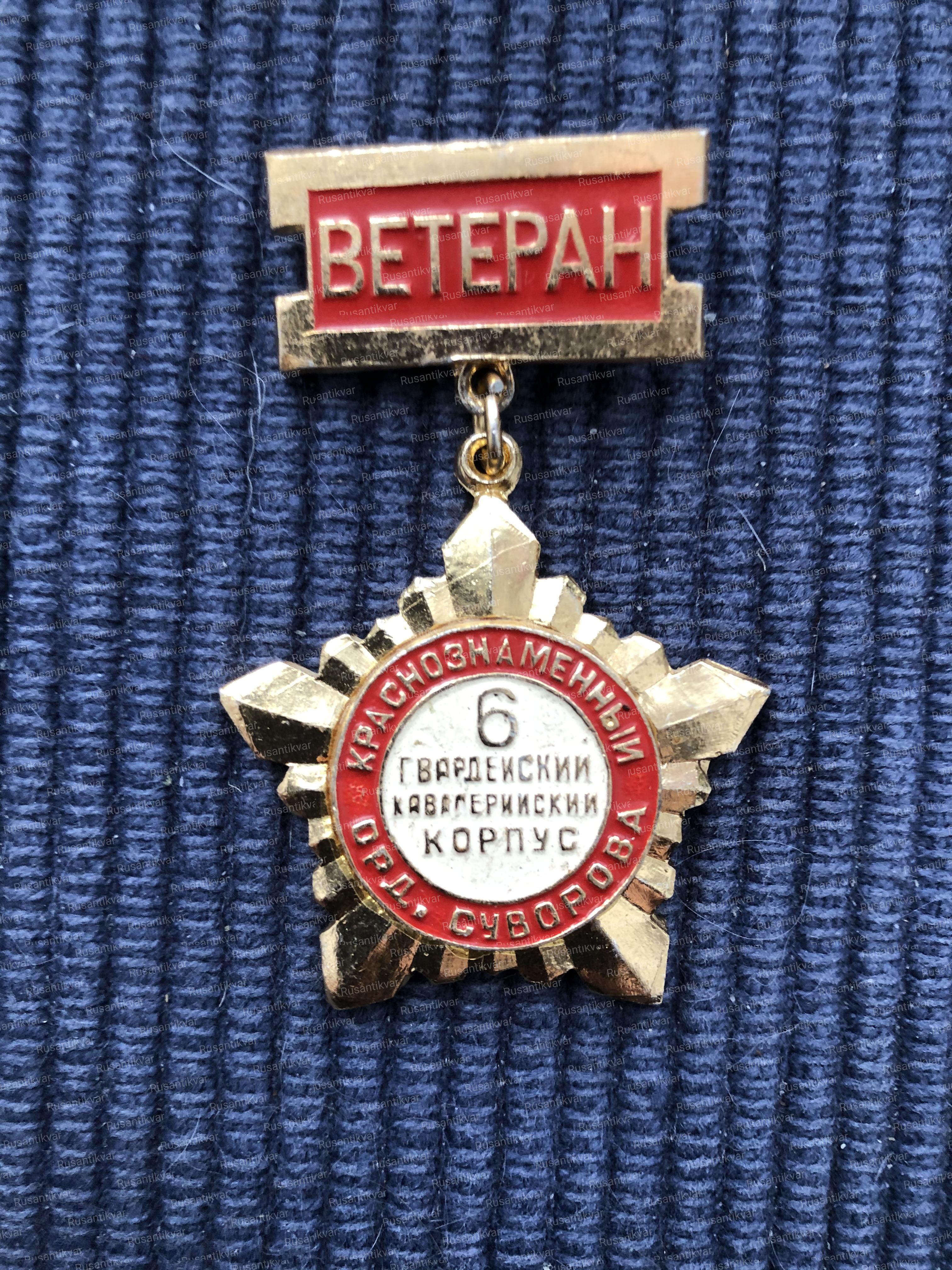 Знак "Ветерана" Краснознаменного ордена Суворова 6-го Гвардейского кавалерийского корпуса.