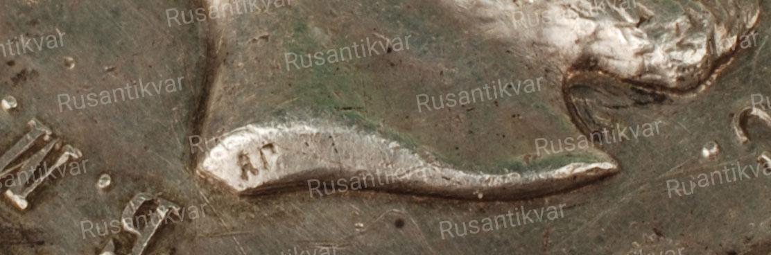 На обрезе шеи инициалы медальера Р.Г. (Р.Ганнеман)