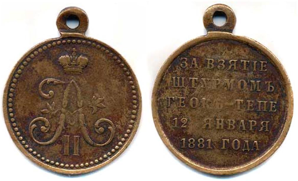"За особое отличие при рекогносцировке 21 декабря 1880 года".(Третий поход,закончившийся взятием Геок-Топе.)
