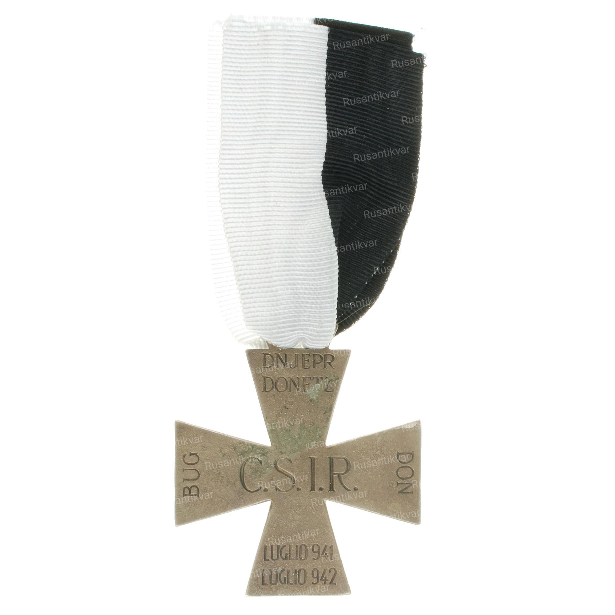 С лицевой стороны крест покрыт белой эмалью. Его лучи заключены в тонкий серебряный контур. Реверс без эмалевого покрытия. В верхней его части выбиты надписи: «DNJEPR» («Днепр») и «DONETZ» («Донец»), а внизу стоят даты: «LUGLIO 941, LUGLIO 942» («ИЮЛЬ 1941, ИЮЛЬ 1942»). В горизонтальной плоскости (слева-направо) написано «BUG» («Буг») и «DON» («Дон»). В центре креста крупными литерами выгравирована надпись «C.S.I.R.».