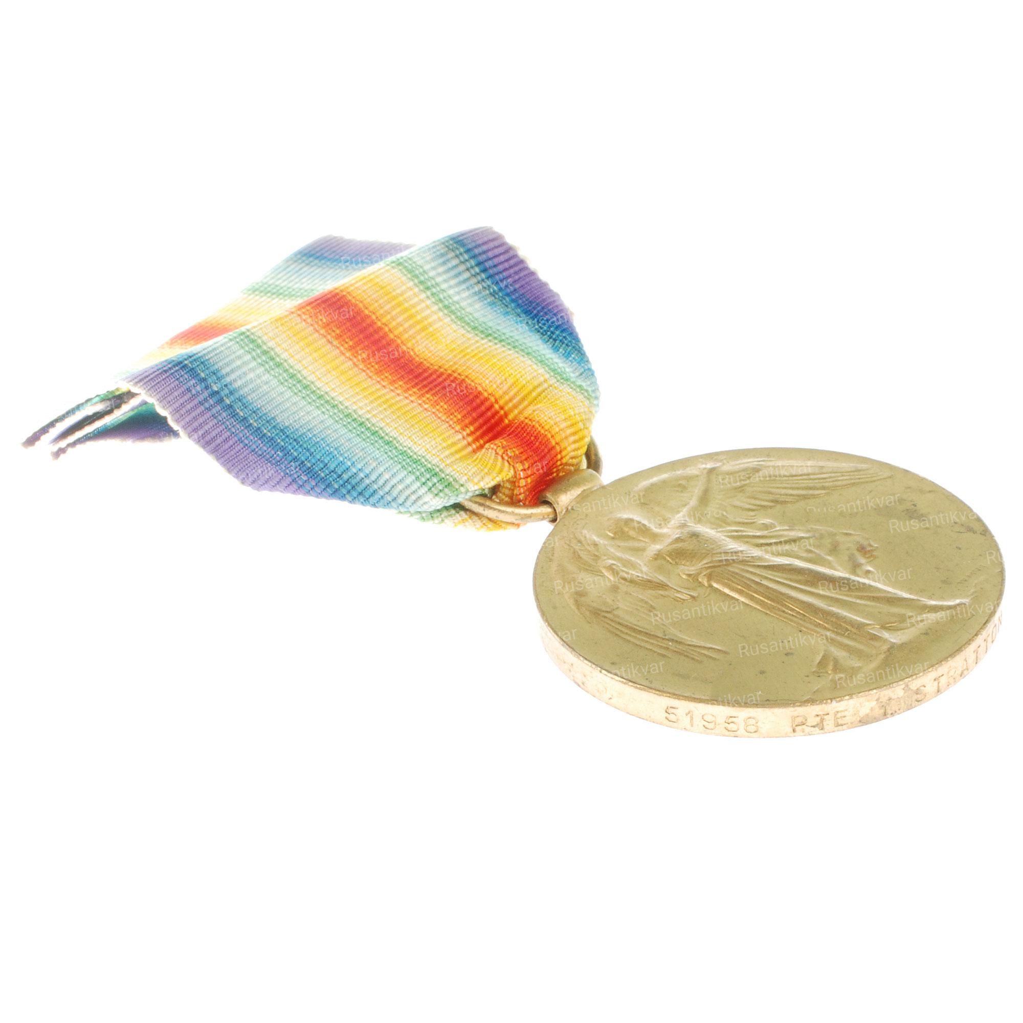 Союзническая медаль «За победу в 1 Мировой войне» («Великая война за цивилизацию») британского выпуска. Оригинальное название награды на английском языке; The Victory Medal. Учреждена в 1919 году. Великобритания (Англия). Выпуск 1919 года. Принадлежала саперу Корпуса Королевских Инженеров (английский язык; The Corps of Royal Engineers) А. Снайту. Период 1 Мировой войны (1914-1918 гг.).