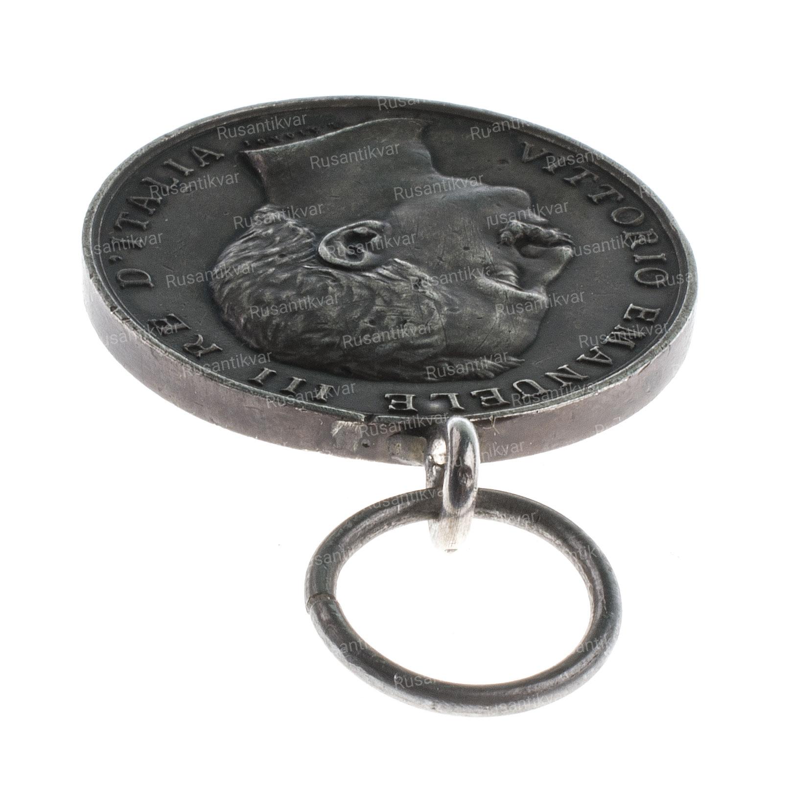 На аверсе медали — профиль Виктора Эммануила — короля Италии.