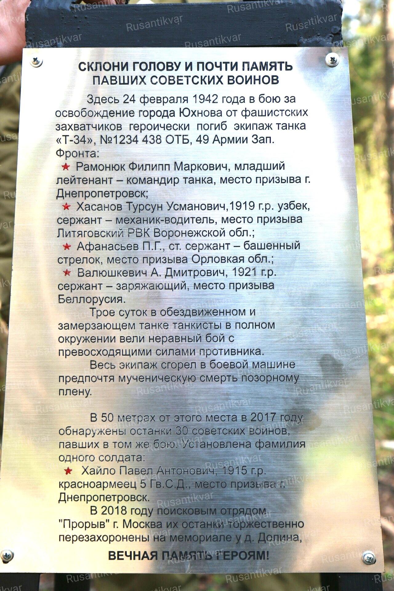 11. Табличка с информацией о погибших танкистах. Установлена на месте гибели экипажа Рамонюка.