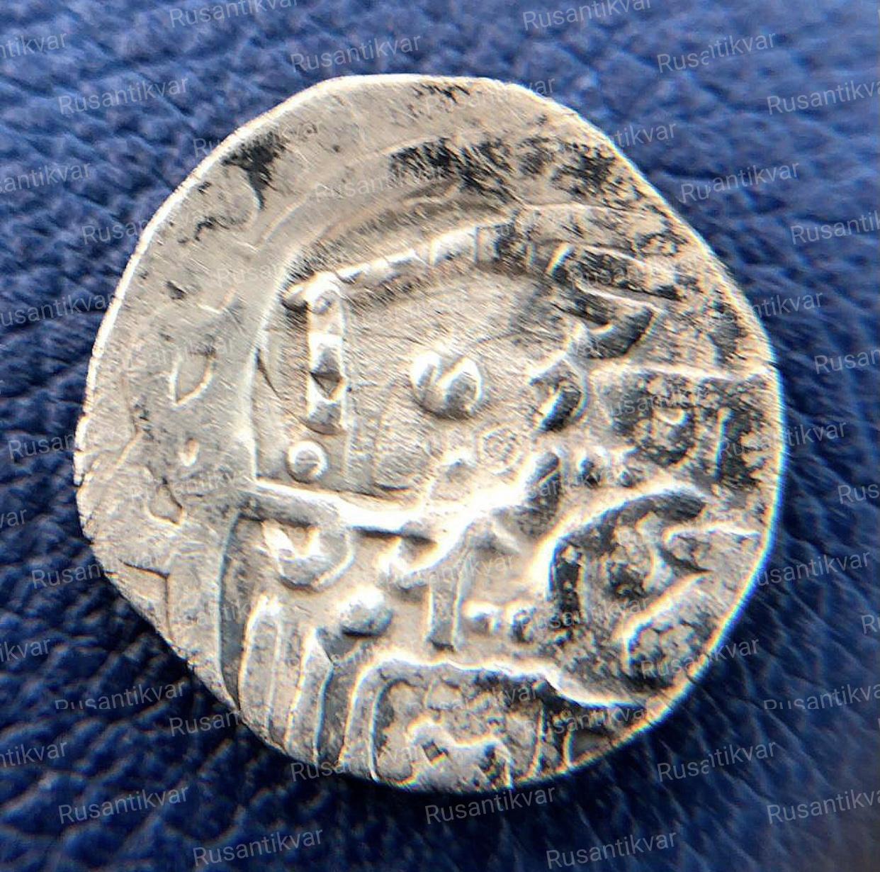 Монета Вел.Князя Олега Ивановича с надчеканкой Рязанской тамги на подражании ордынскому дирхему.Вес 1.60гр.