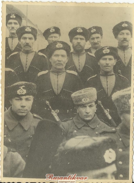 Фото кубанских казаков Кавказского полка,немец использовал в качестве почтовой открытки и в стихотворной форме написал следующее:"Приехал к донским казакам,а вместо плясок и песен нашёл клопов,блох и вонь как во время чумы".Окупант,погостить приехал...