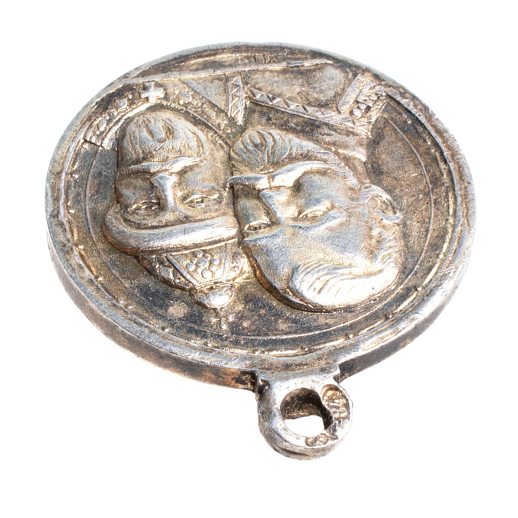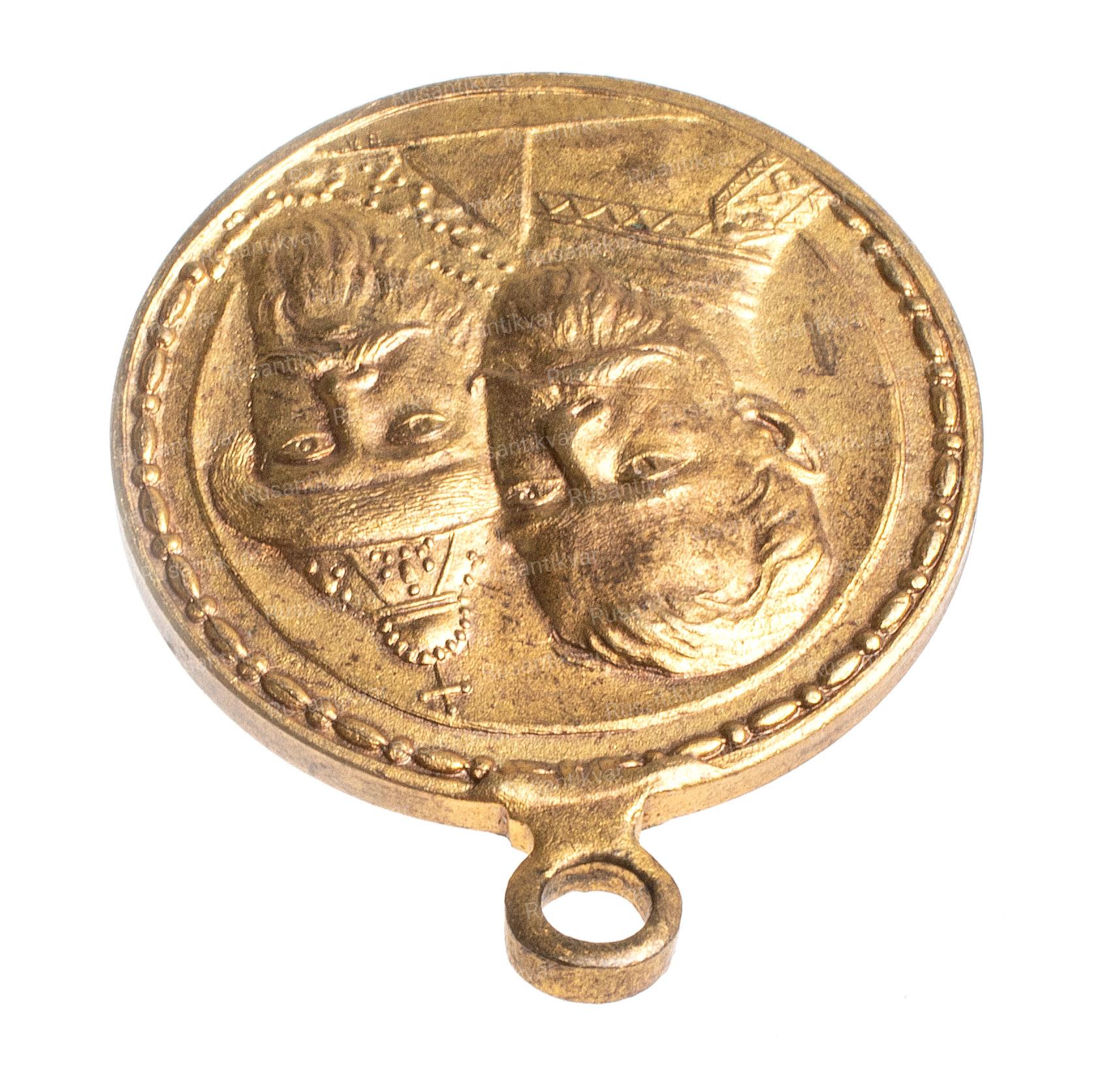 Вензель "А" на погоне Императора Николая II.Крест на шапке Михаила не касается сплошной черты.Пунктирная линия на аверсе начинается с точки и заканчивается пунктиром. На обрезе медали инициалы мастерской "ГРУ".