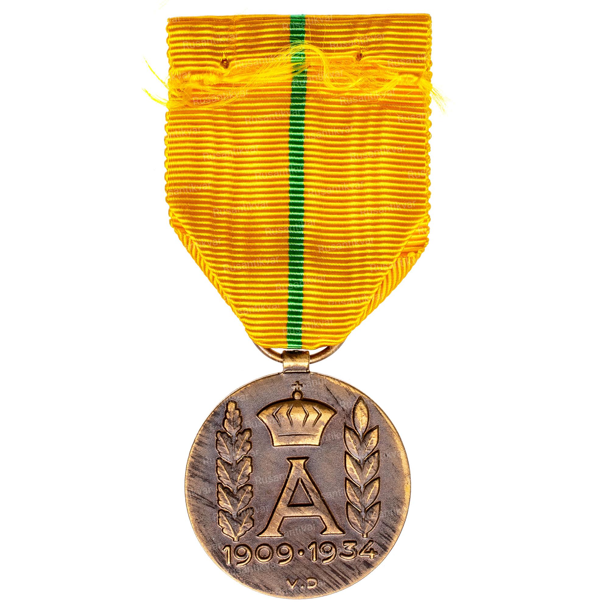 Медаль «В память царствования короля Альберта 1». Учреждена в 1962 году королем Бельгии Бодуэном I (1951-1993 гг.) в честь правления бельгийского короля Альберта 1 (1909-1934 гг.). Награждались бельгийские граждане, состоявшие на воинской службе с 1909 — 1934 гг.