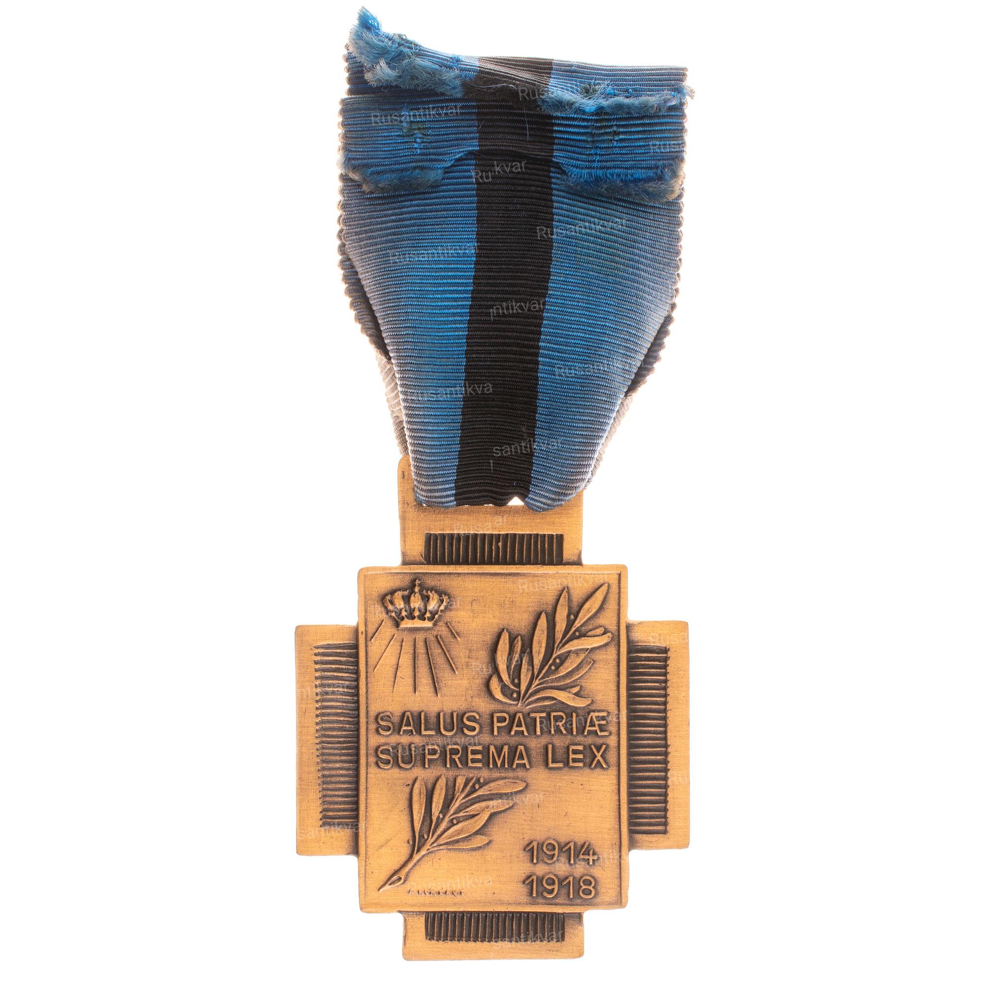 Учрежден 25 октября 1915 г указом Короля Бельгии Альберта I (1909 - 1934 гг). Королевский двор в Брюсселе, 1915 - 1920 гг). Бронза, 25.7 гр. Размеры 64 х 40.3 мм. Сохранность отличная (UNC).