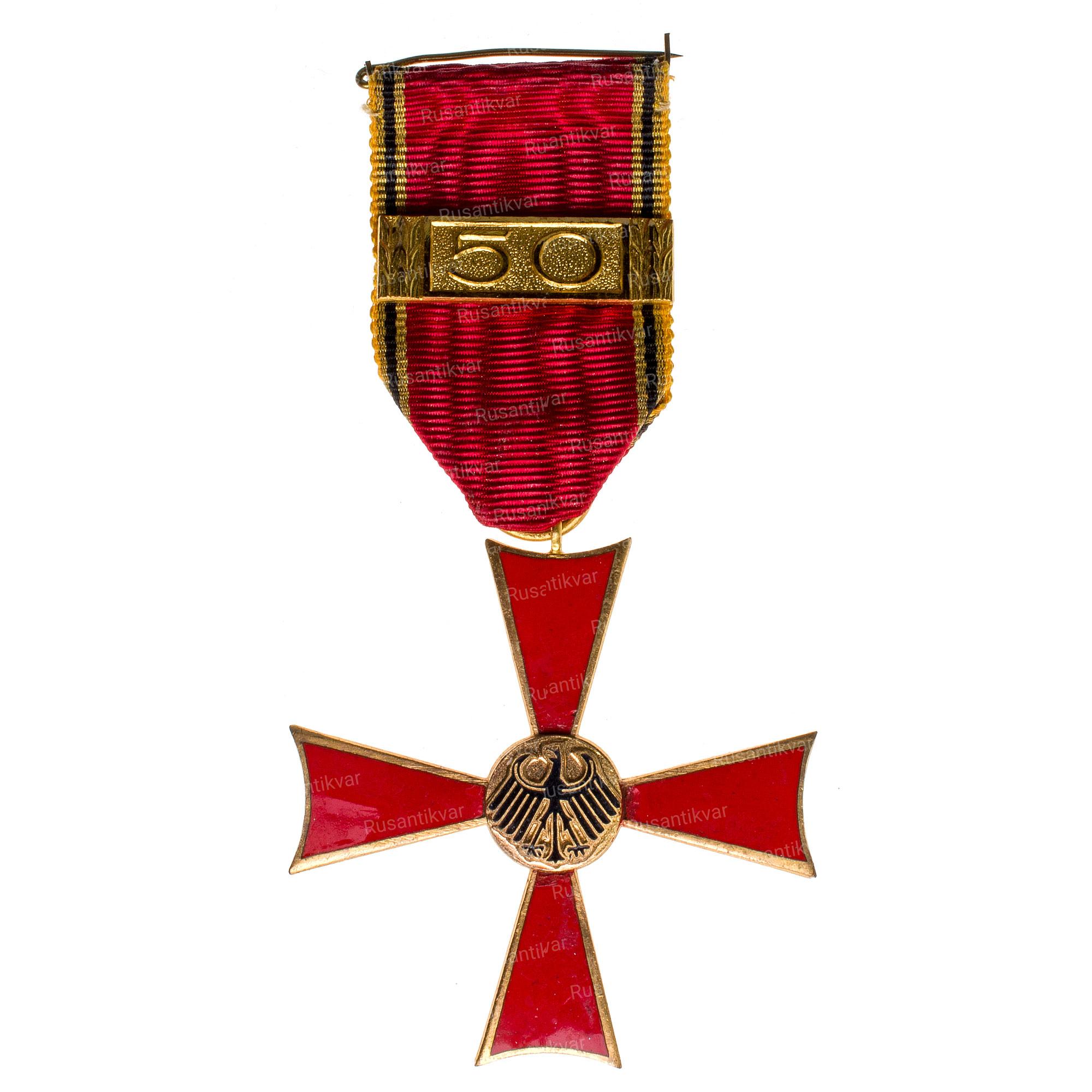 ФРГ. Крест "За заслуги.50 лет выслуги" в наградной коробке.