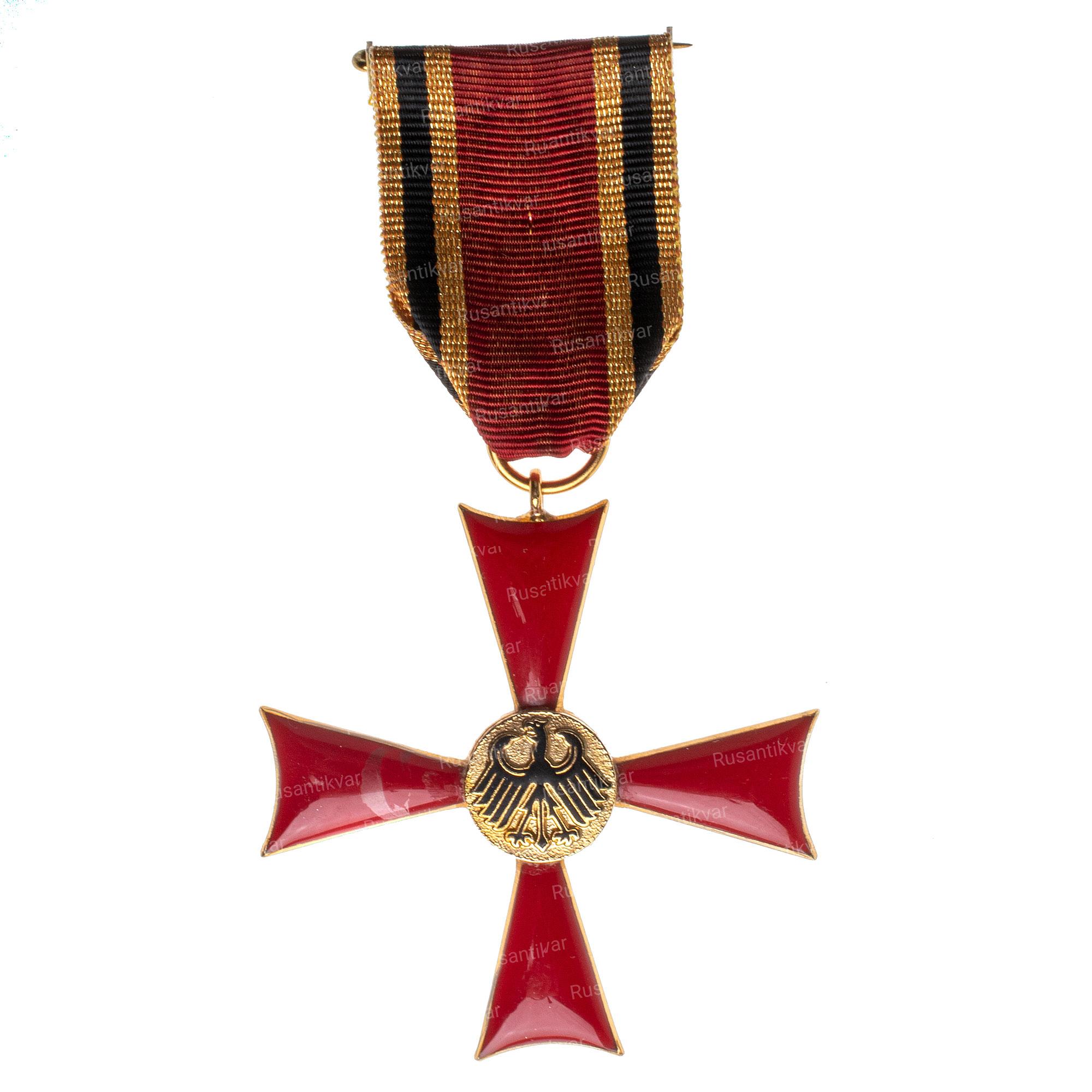 Орден За заслуги перед Федеративной Республикой Германии , также известной как Федеральный Крест Заслуги, является единственным общей заслуга награды Федеративной Республики Германии . Он присуждается за особые достижения в политической, экономической, культурной, интеллектуальной или волонтерской сфере. Орден вручается в восемь этапов , в том числе Большой Крест в девять этапов. Все земли Германии, кроме Бремена и Гамбурга, также награждают медалями за заслуги . история Елизавета II с особым уровнем Большого креста (1992 г.). Орден За заслуги перед Федеративной Республикой Германии был основан на декрете от 7 сентября 1951 года тогдашнего федерального президента Теодор Хейс .