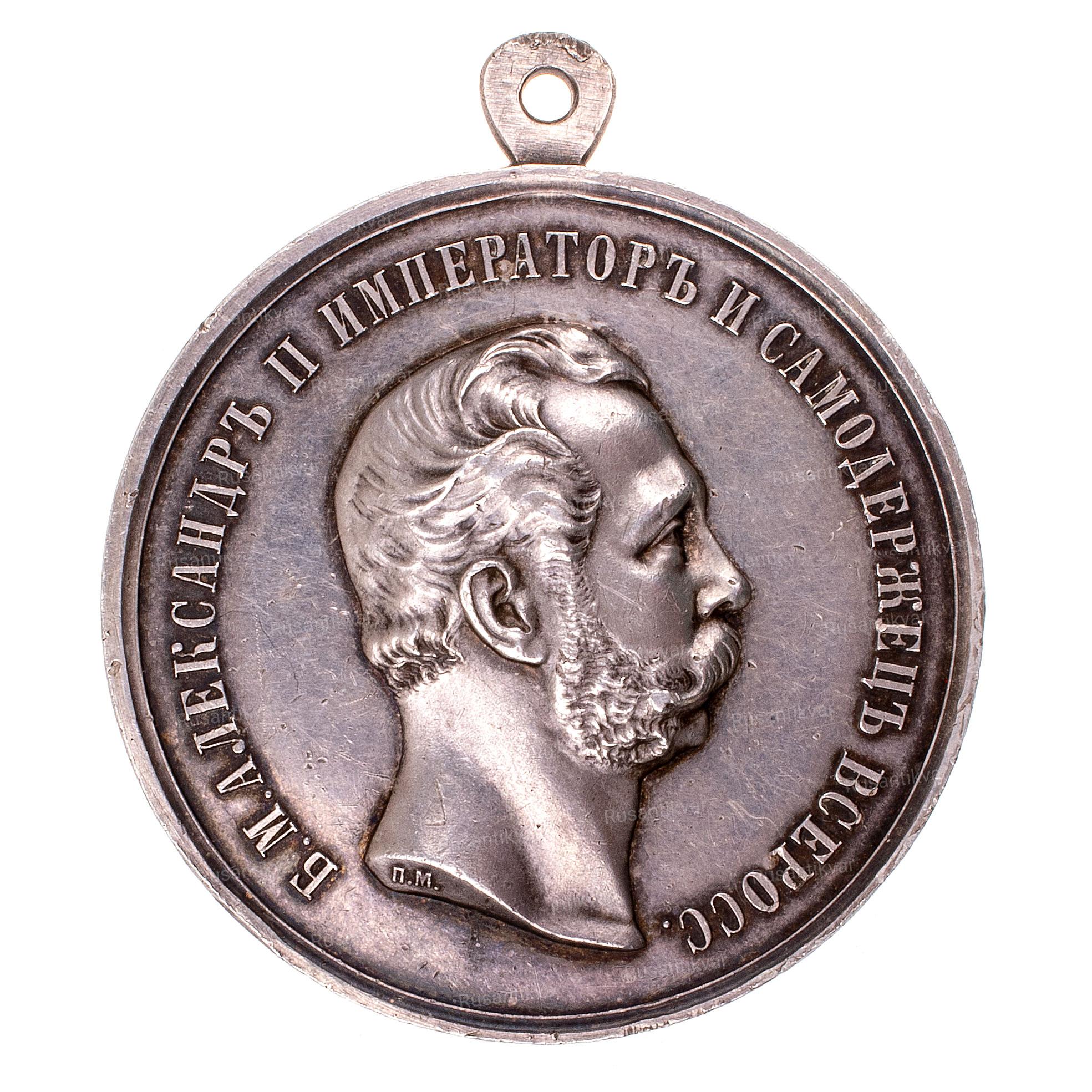 Шейная медаль "За Усердие" с портретом Императора Александра II (профиль вправо ) в обрезе инициалы медальера П.М. Петр Мещеряков (работал в 1854 - 1879 гг.) Вариант с надписью (САМОДЕРЖЕЦЪ)
