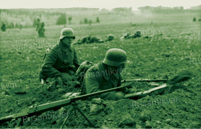 Однако русские продолжают атаковать с криками «ура» в направлении Дороховки (здесь наступали части 166-й сд. – Л.Л.). Наши пулемёты без перерыва стреляют по наиболее близко подошедшим подразделениям и наносят противнику тяжелейшие потери. Особенно сильное воздействие на наступающего противника оказывает фланговый огонь приданного тяжёлого пулемётного взвода. Казалось, что наступление про-тивника подавлено. Но около 18.00 доложили, что противник прорвался в центре, и контратака успеха не имела. Осознавая опасность, командир ро-ты сам вернул некоторые отошедшие назад танки. Подразделения роты стреляют со всех орудий, чтобы остановить штурмующие войска. Но пришлось отойти несколько назад, чтобы прикрыть позиции тяжёлого пулемётного взвода, миномётной группы и противотанковых орудий. В момент крайней опасности наконец-то подошли танки и, атаковав против-ника, продвинулись до передовой позиции. Группами по 20-40 человек советские солдаты, спрятавшись в домах и садах, яростно отстреливаются.