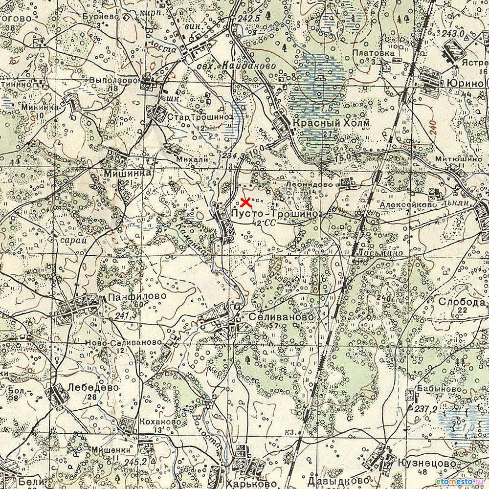 13. Место обнаружения останков генерал-майора Котельникова Я.Г. (фрагмент старой карты);