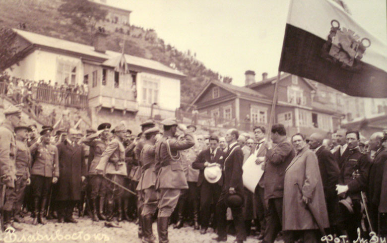 Вручение знамени 3-й дивизии Чехословацкого армейского корпуса представителями г. Владивостока.