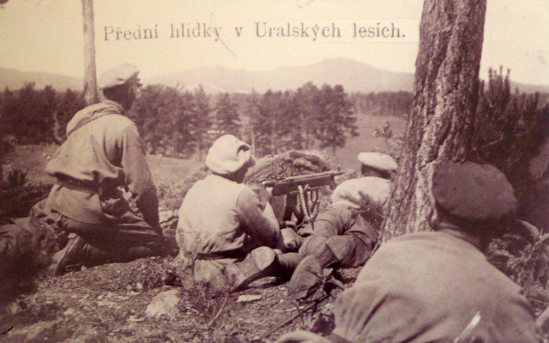 Передовые наблюдатели чехословацких войск в Уральских лесах.