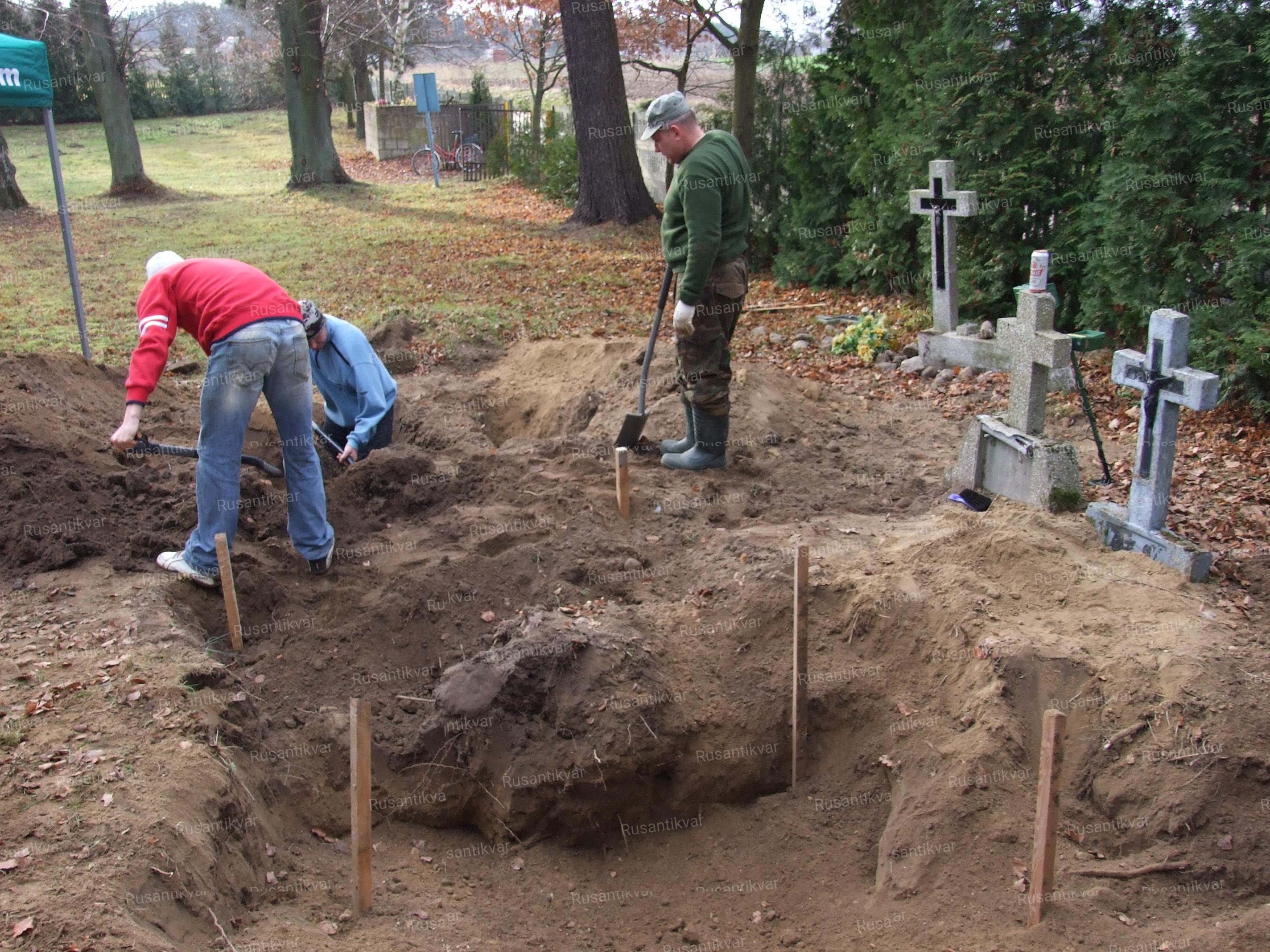 11 февраля 2012 года при температуре минус 23 градуса по Цельсию мы продолжили эксгумационные работы в Линовно. Благодаря журналу, нам удалось взять в аренду экскаватор для вскрытия верхнего мерзлого слоя земли. Это был единственный экскаваторщик во всей близлежащей округе, который согласился с нами работать, а не сослался, как остальные, что в такой мороз их техника не выдержит. Жаль, что мы не запомнили его имя…