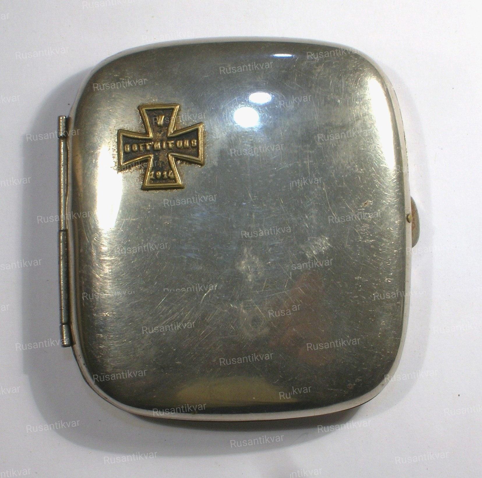 Портсигар на ПМВ с накладным патриотическим знаком .